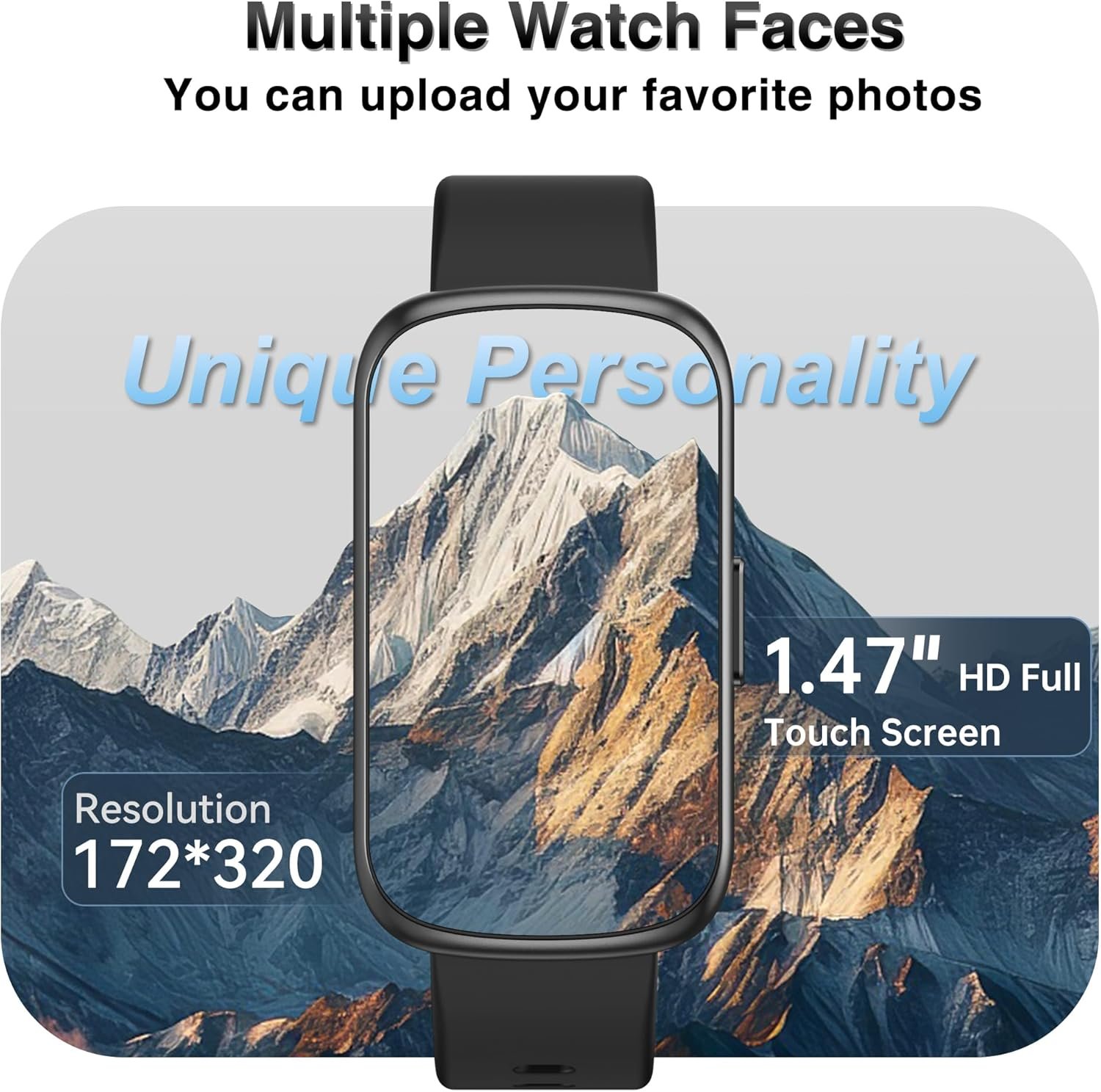 【Ultra-Clear Touch Screen & DIY Dial】This smart watch for women/men, the 1.47-inch ultra-high-definition full touch color screen made of TFT material has higher color saturation, clearer picture and smoother touch. The watch app [GloryFit] has more than 200 free watch faces available, and supports uploading images to customize your own watch face.