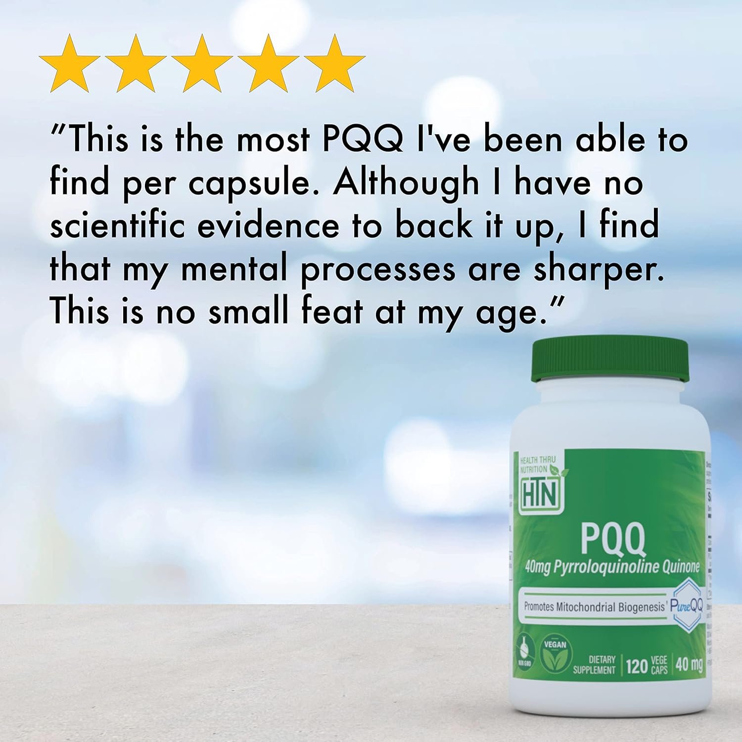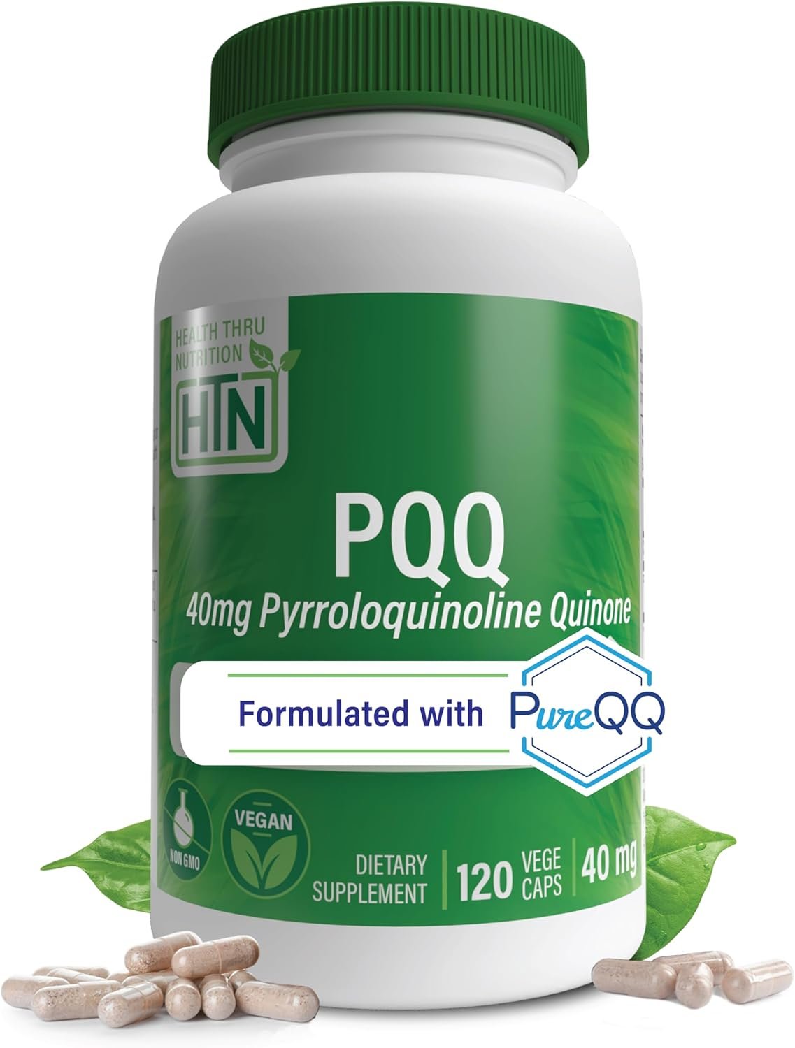 🥝 Nature’s Nutrient: PQQ (Pyrroloquinoline quinone) is a redox cofactor and antioxidant commonly found in kiwi fruit; HHTN’s PureQQ provides the only high strength dose of 40mg per day in one easy-to-swallow, non-GMO vegecap!