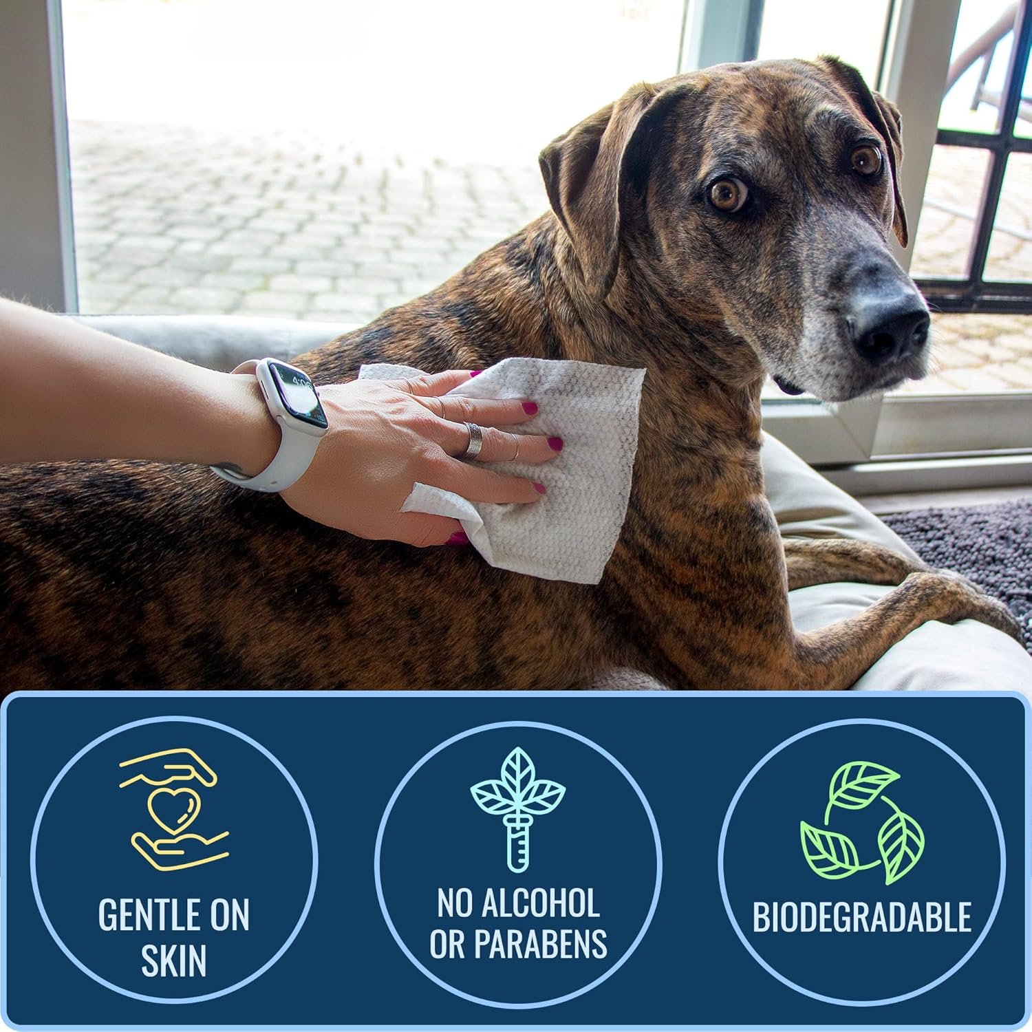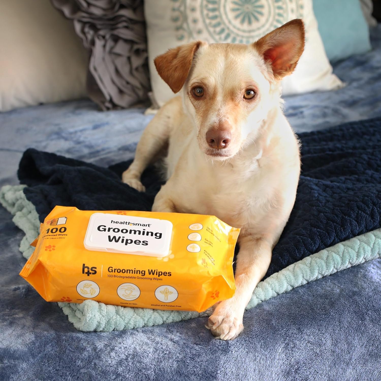 HealthSmart Dog & Cat Grooming Wipes, Alcohol and Paraben Free, Gentle on Skin, 100% Biodegradable, 100 Count, Deodorizing, Great for Paws, Ears, and Butt