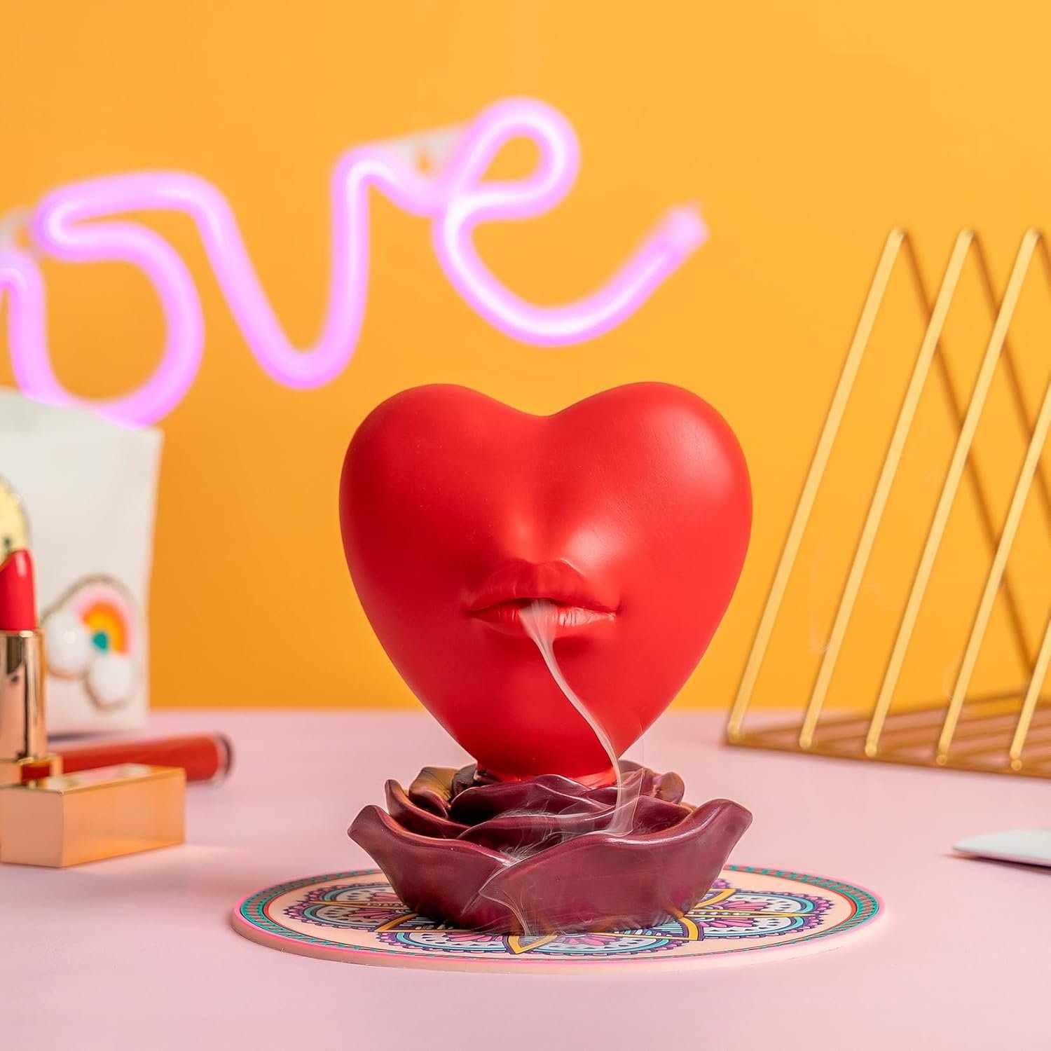 ❤ UNIQUE DESIGN: This preppy incense burner designs are bright and colorful. Design of a heart blooming from a rose which can immediately become the focus of the house and hopefully to encourage everyone. Crafted with love and attention to detail, this incense holder is not just a room decor item but also a symbol of love and affection.