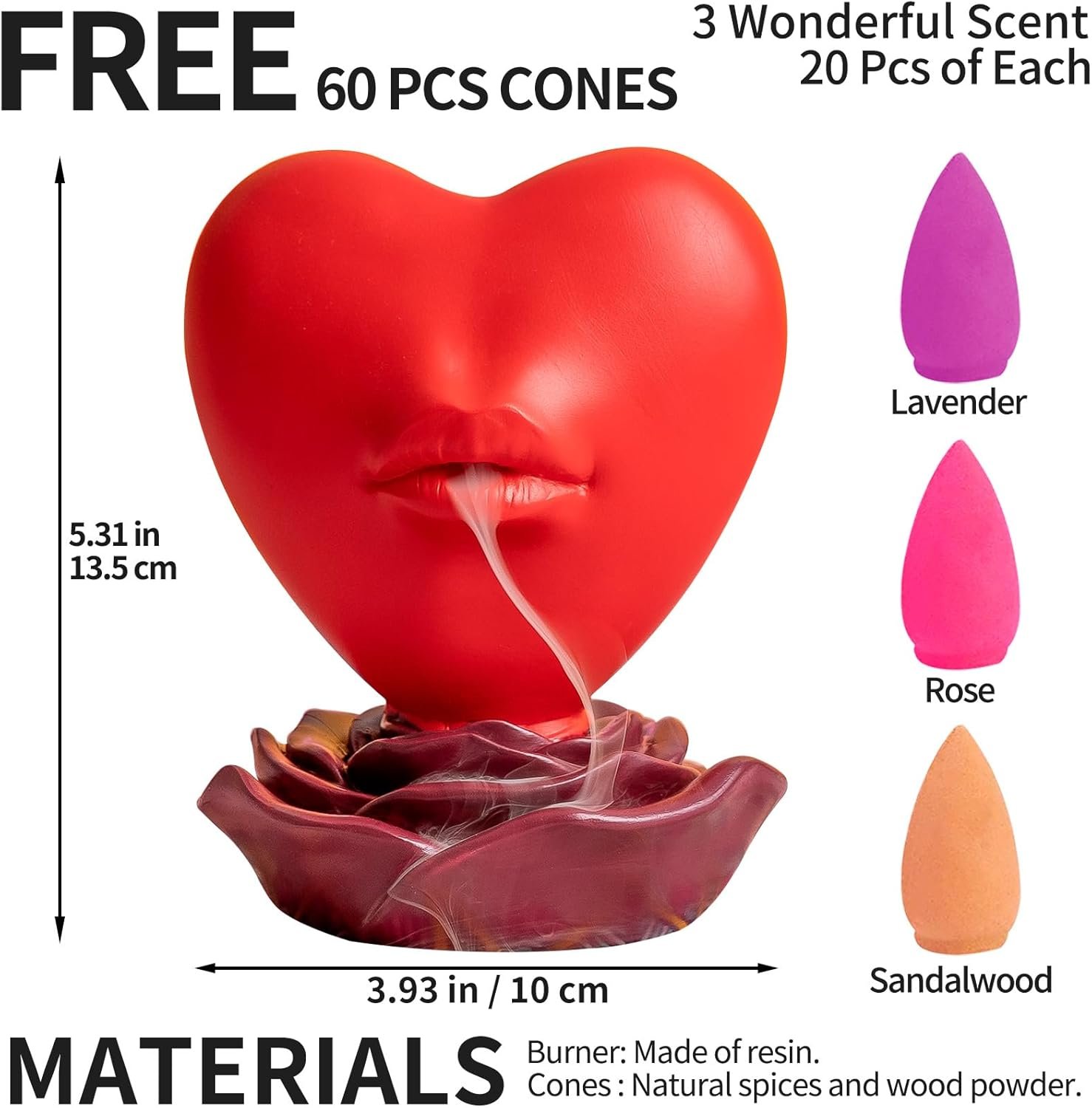 ❤ APPLICATION: Place the incense cone on the top of the heart, the smoke will flow down to form a waterfall-like effect and to show lip mouth love. They can be applied to bedroom, living room, dorms, yoga room etc.
