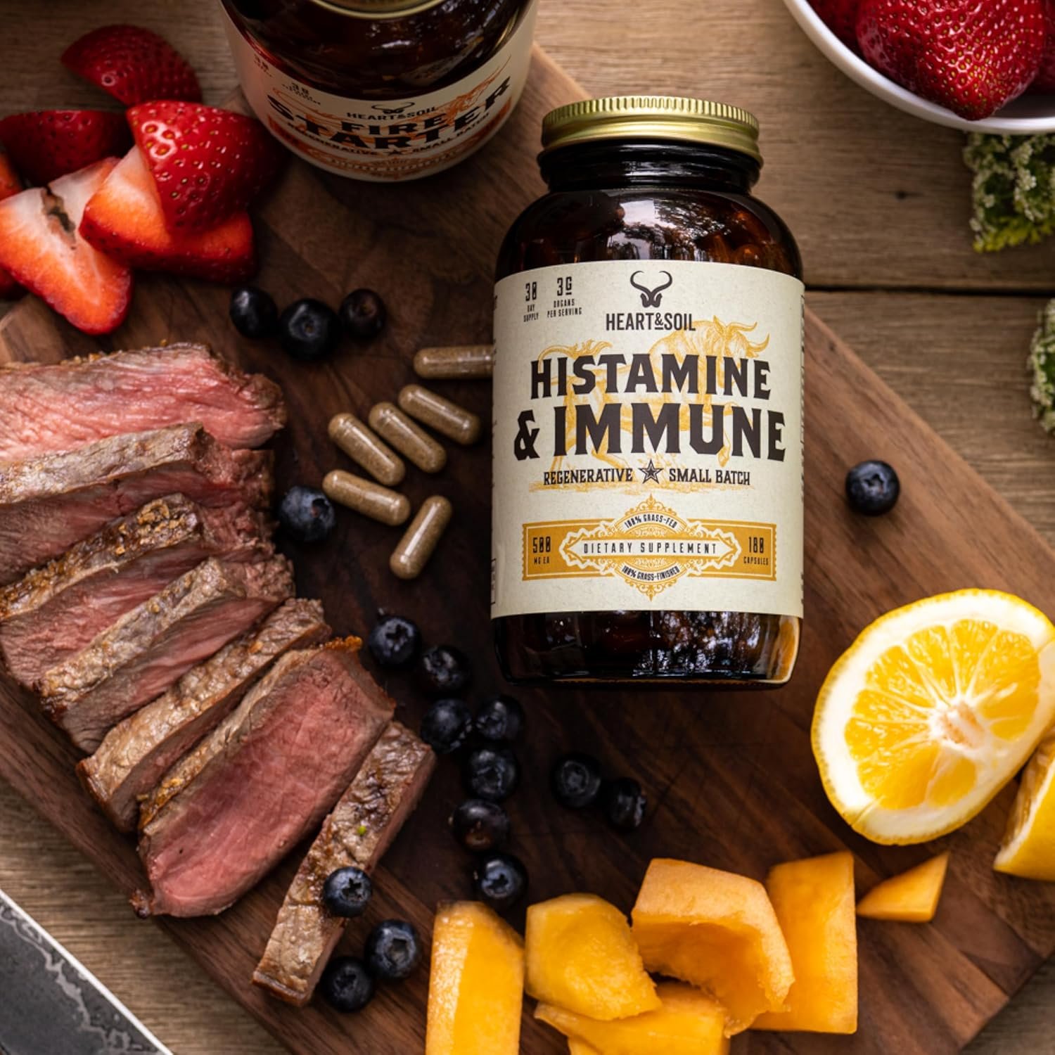 HEART & SOIL – Histamine & Immune Supplement – Immune Support Supplement – Enriched with Selenium, Vitamin A, Thymopoietin, Thymulin, DAO, Thymosin, LEAP-2 & Peptides – 180 Capsules