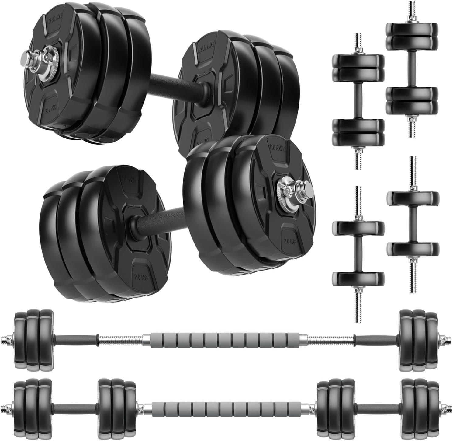 COMPREHENSIVE WEIGHT SET HOME GYM: Our all-in-one dumbbell-barbell set allows you to have a versatile workout. The dumbbells can be used to sculpt your arms, while the barbell setup allows you to practice dead-lifts or squats. This product is perfect for improving overall health or encouraging weight loss. It also helps strengthen the upper body, core muscles, and lower body. The adjustable design makes it easy to stay fit at home.