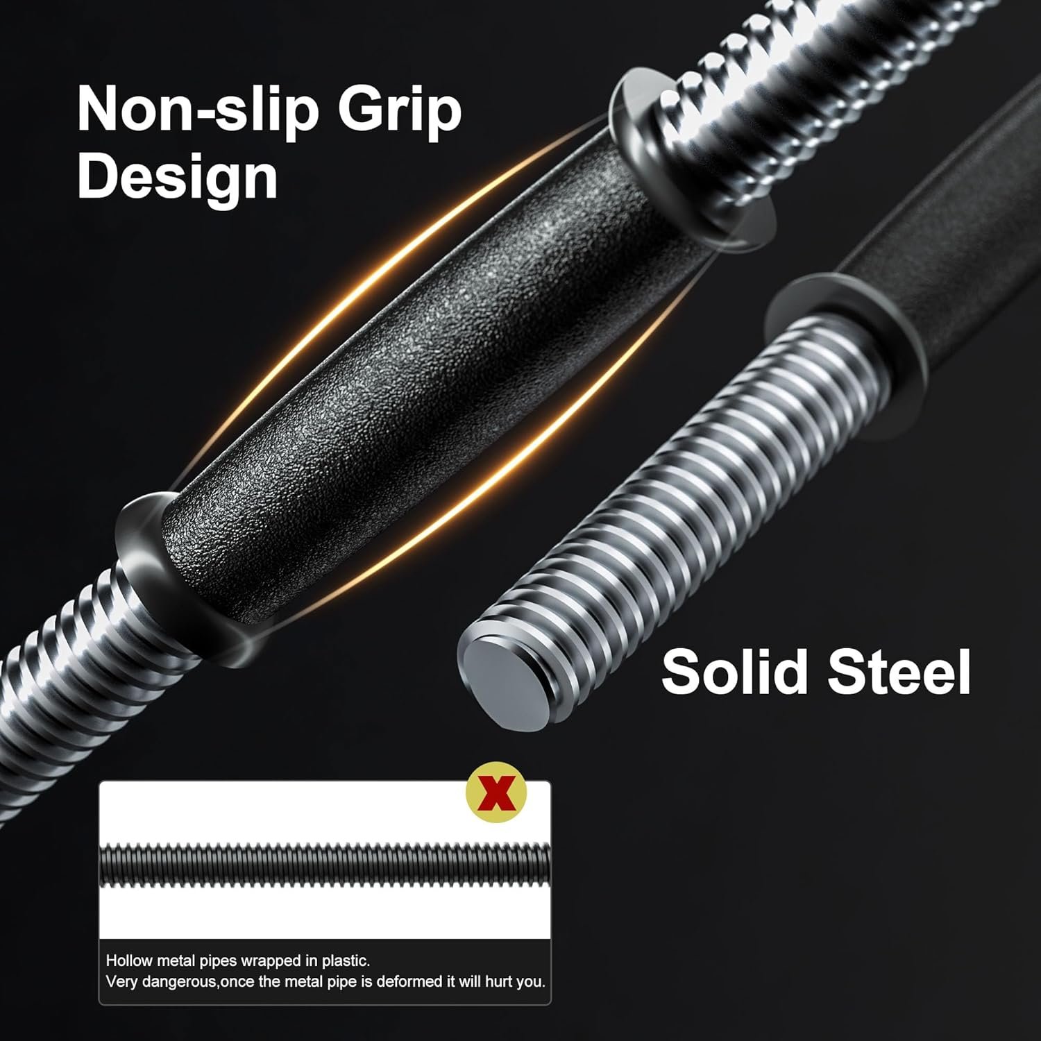 NON-SLIP SAFE DESIGN: Each dumbbell handle is solid steel with coarsened rubber coating handles give you great control over your weights, allow you to feel safe and be worry-free while doing your workout, it can give you a better grip so you can improve your coordination and avoid any injuries or accidents. This simply designed dumbbell/barbell can be used to strength train and to build your muscles in order to avoid muscle atrophy and keep healthy.