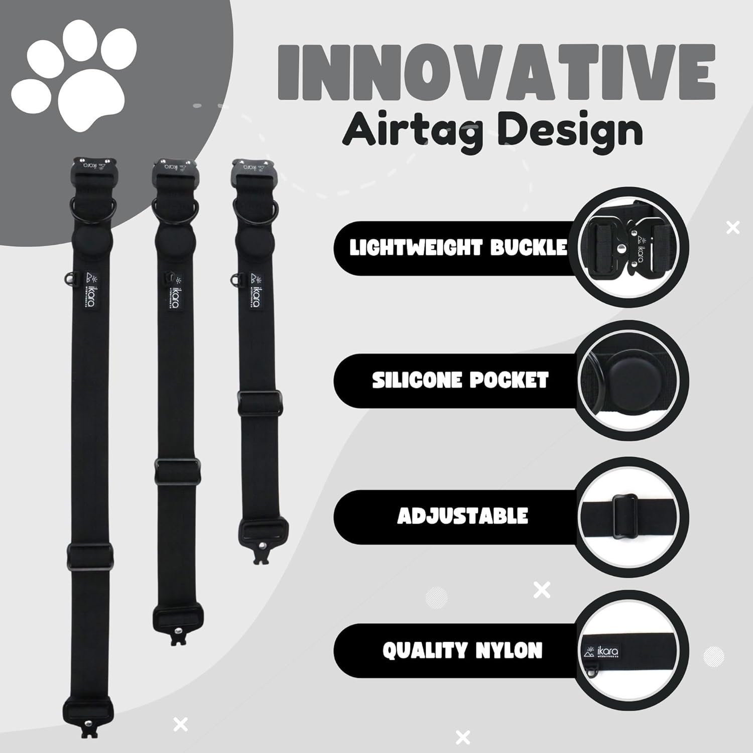 Innovative Design: The unique design of these dog collars for medium, large and extra large dogs boast a lighter buckle, reducing weight and enhancing comfort for your pet. This designer dog collar for dogs also features a dedicated pocket for an Apple AirTag, making it easy to track and locate your furry friend.