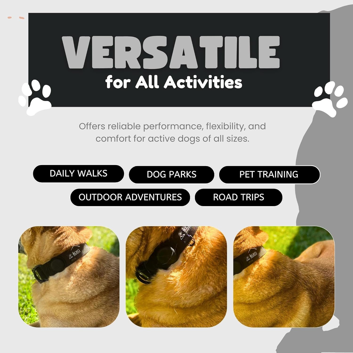 Versatile Usage for Various Activities: Our dog airtag collar adapts to daily walks, and outdoor adventures. These collars for large dogs offer reliable performance and flexibility, making our dogs accessories perfect for all your pet’s activities, from obedience training to trail explorations.
