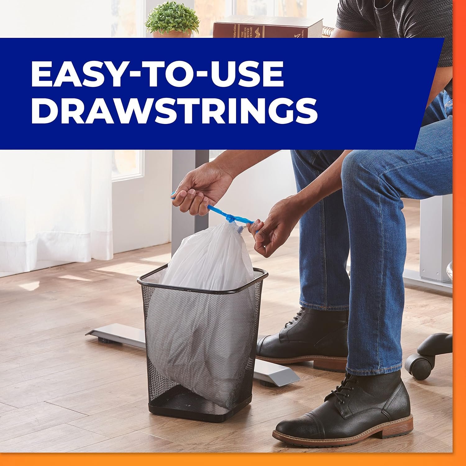 DEPENDABLE DRAWSTRING CLOSURE—Take your trash from can to curb with confidence with these trash can liners