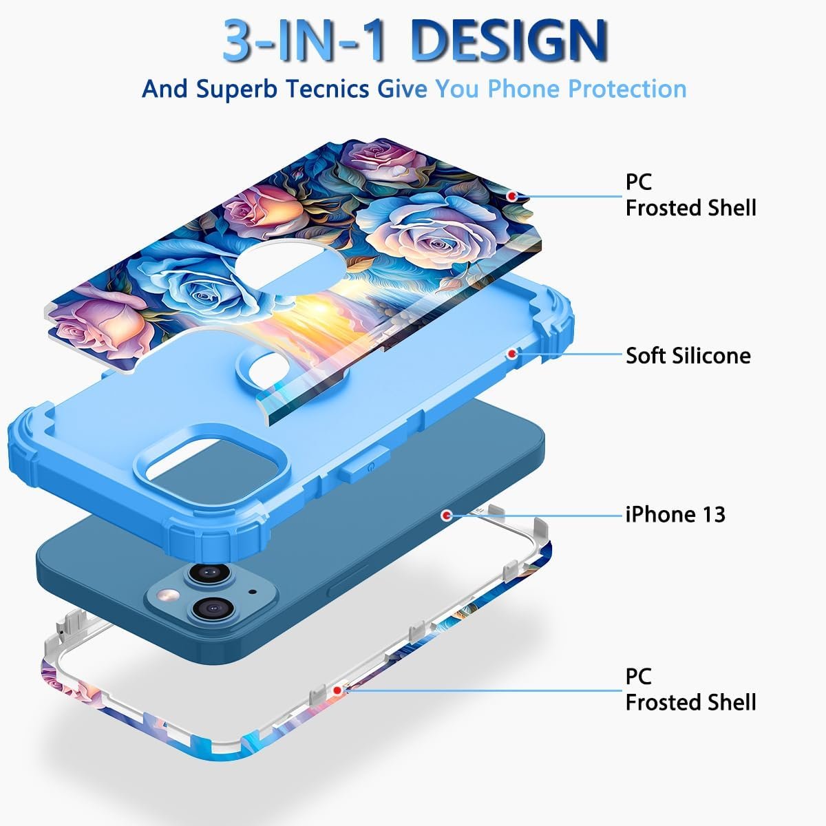 ♛【3-layer Design】:Hard PC Plastic front cover + Flexible TPU inner skin + Hard PC Plastic back cover.Unique Detachable Design & 3 in 1 Layers Protection: Shockproof ,Dust Protection , Scratch Protection and Drop Protection,smooth feel around the edges for a good hand grip.Specially designed to protect your Apple iPhone 13/iPhone 14.
