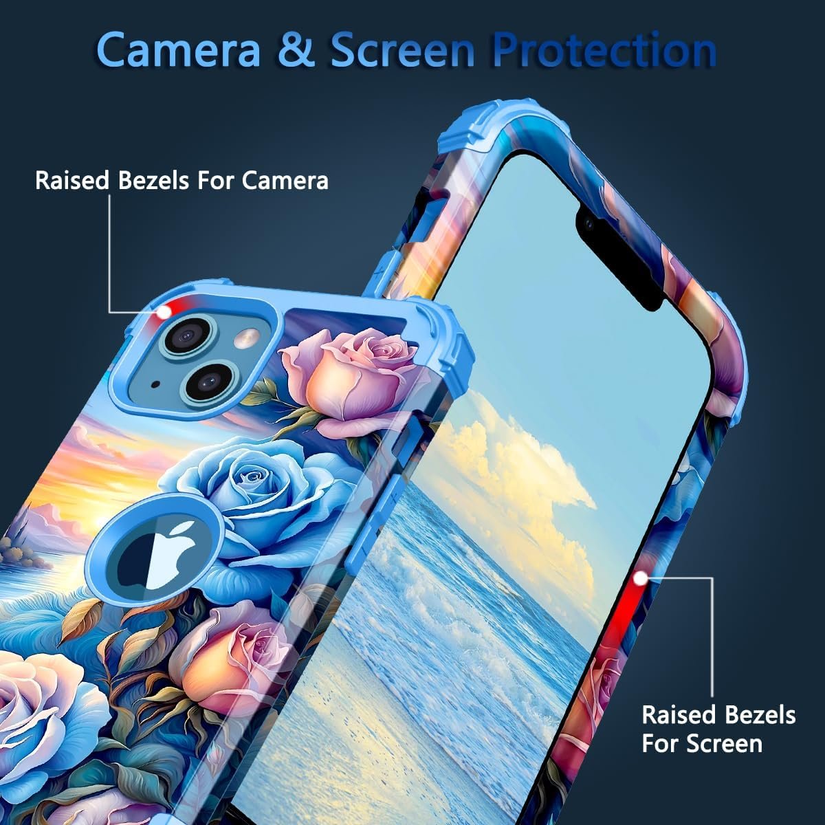 ♛【Screen & Camera Protection】:The sufficient raised edge lips will protect your screen & camera from scratches and dirt.The shockproof full-body protective case can protect your phone screen and camera from being scratched.flexible silicone raised bumper and 4-rubber corners provide good support cushion.