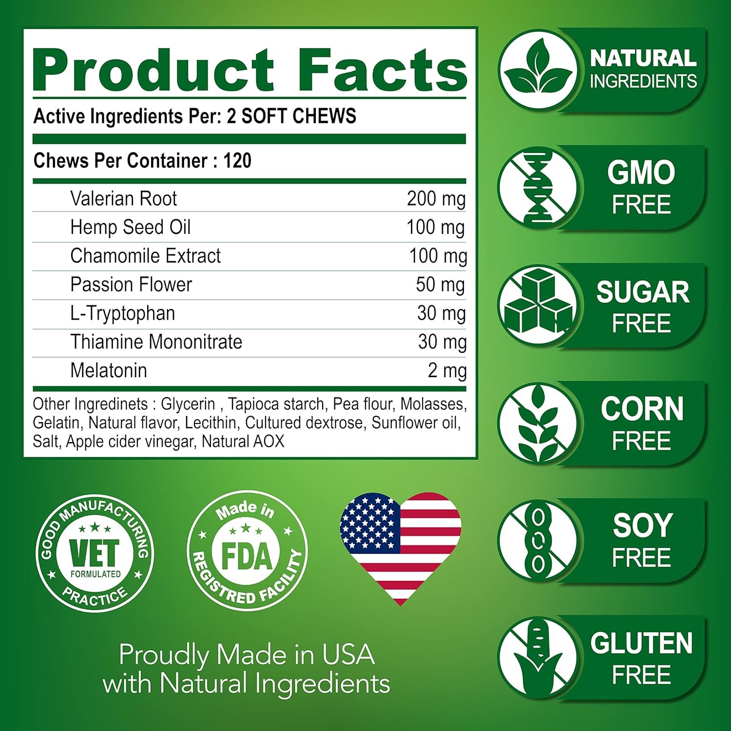 Premium Natural Ingredients Give Results: No Added Sugar, Wheat, Corn, Gmo or Preservatives. We are committed to using only best ingredients that deliver results in our dog anxiety chews