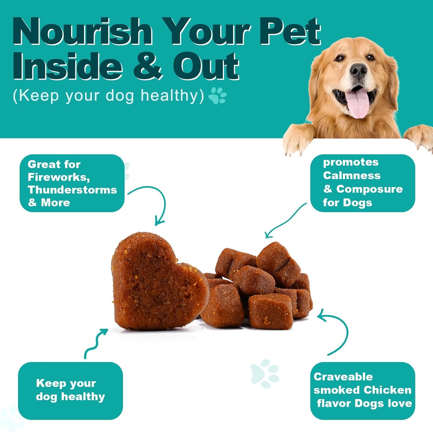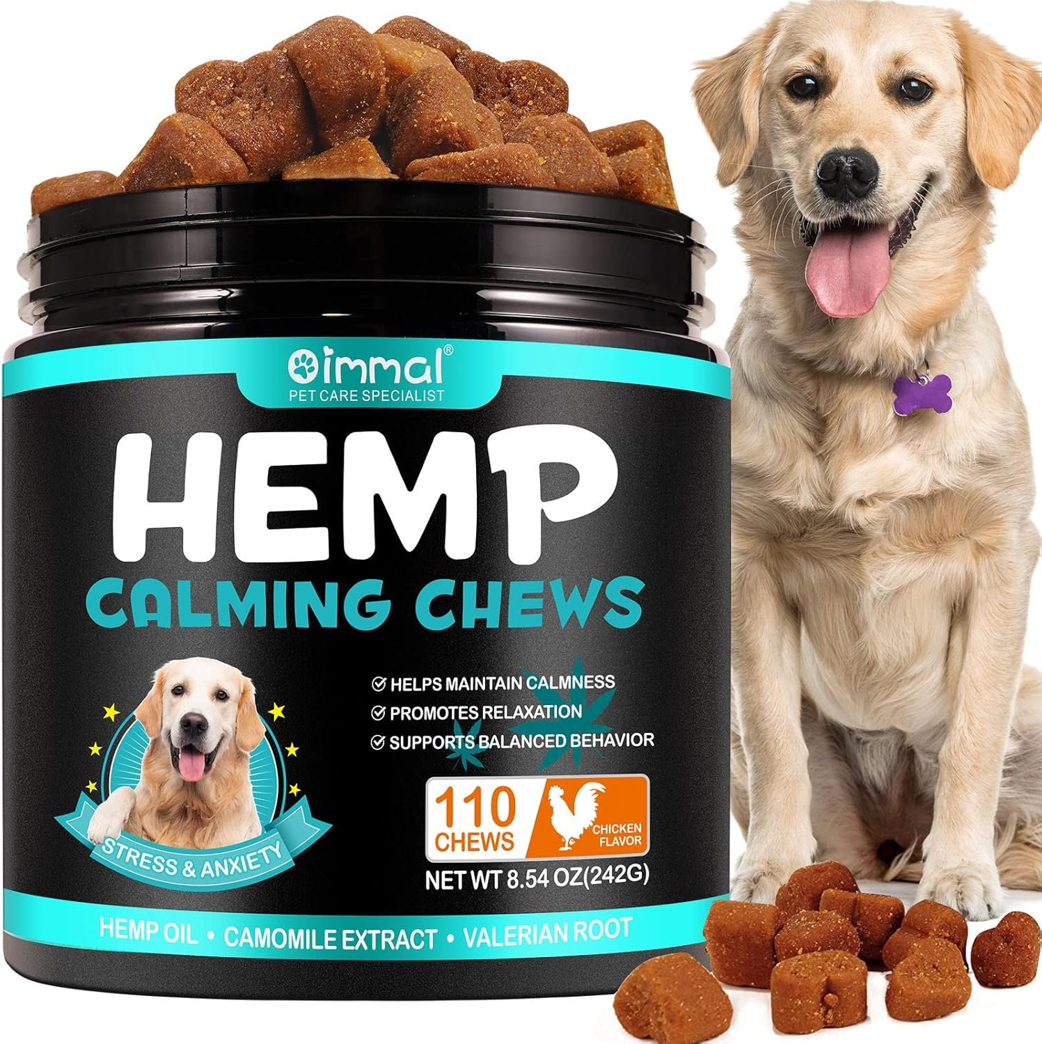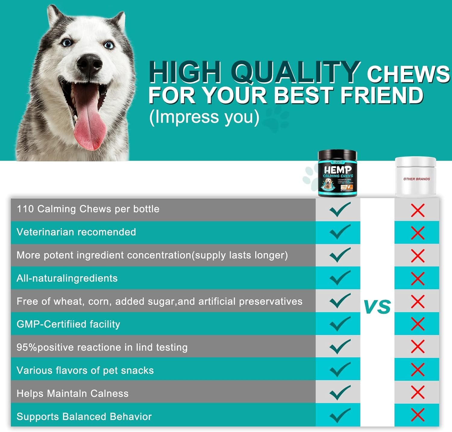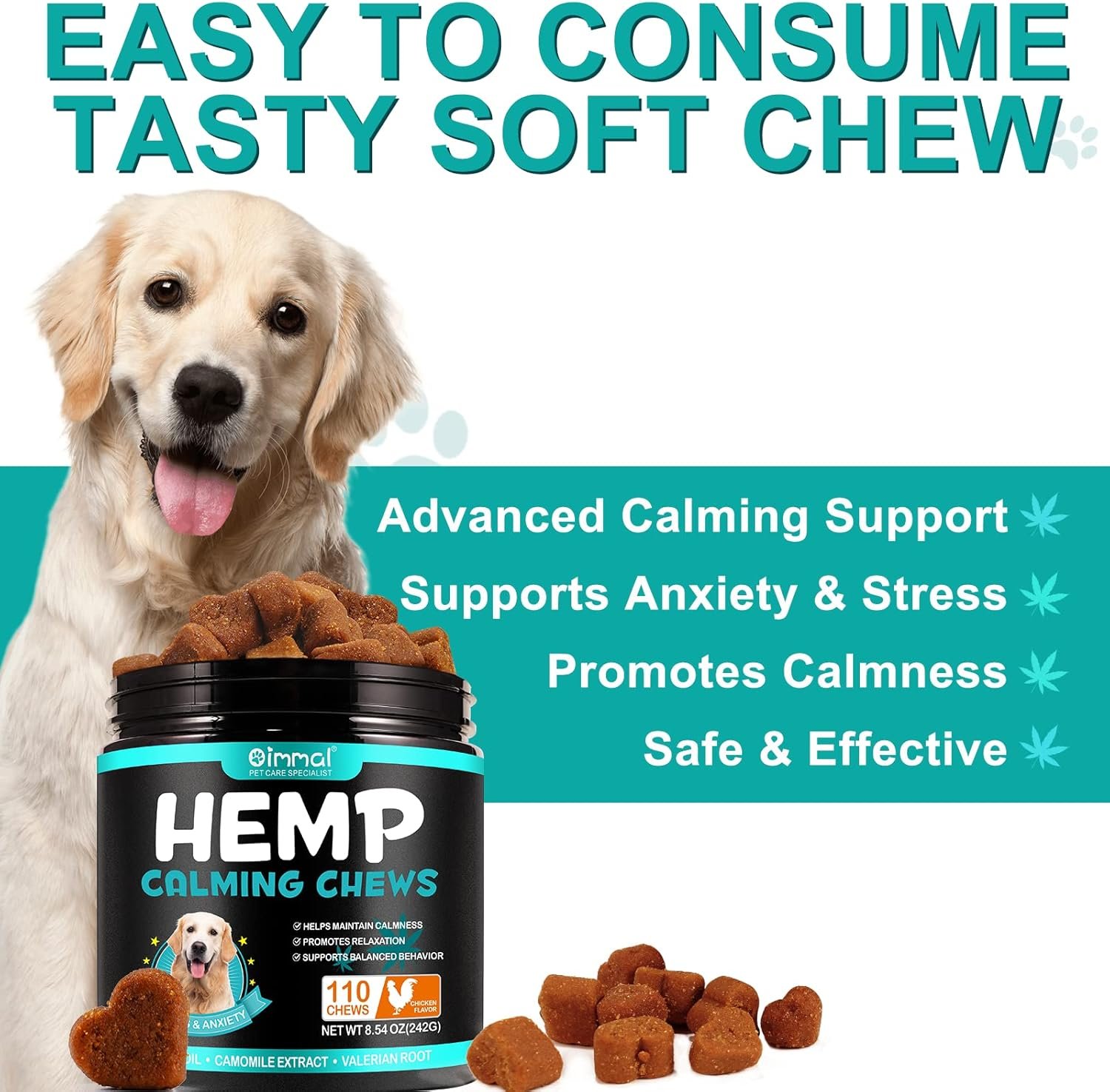 Hemp Calming Chews for Dogs,110 Chews Chicken Dog Calming Treats Anxiety Relief 100% Golden Ratio of Natural Ingredients Calming Dog Treats, Aid with Separation, Barking, Stress Relief, Thunderstorms