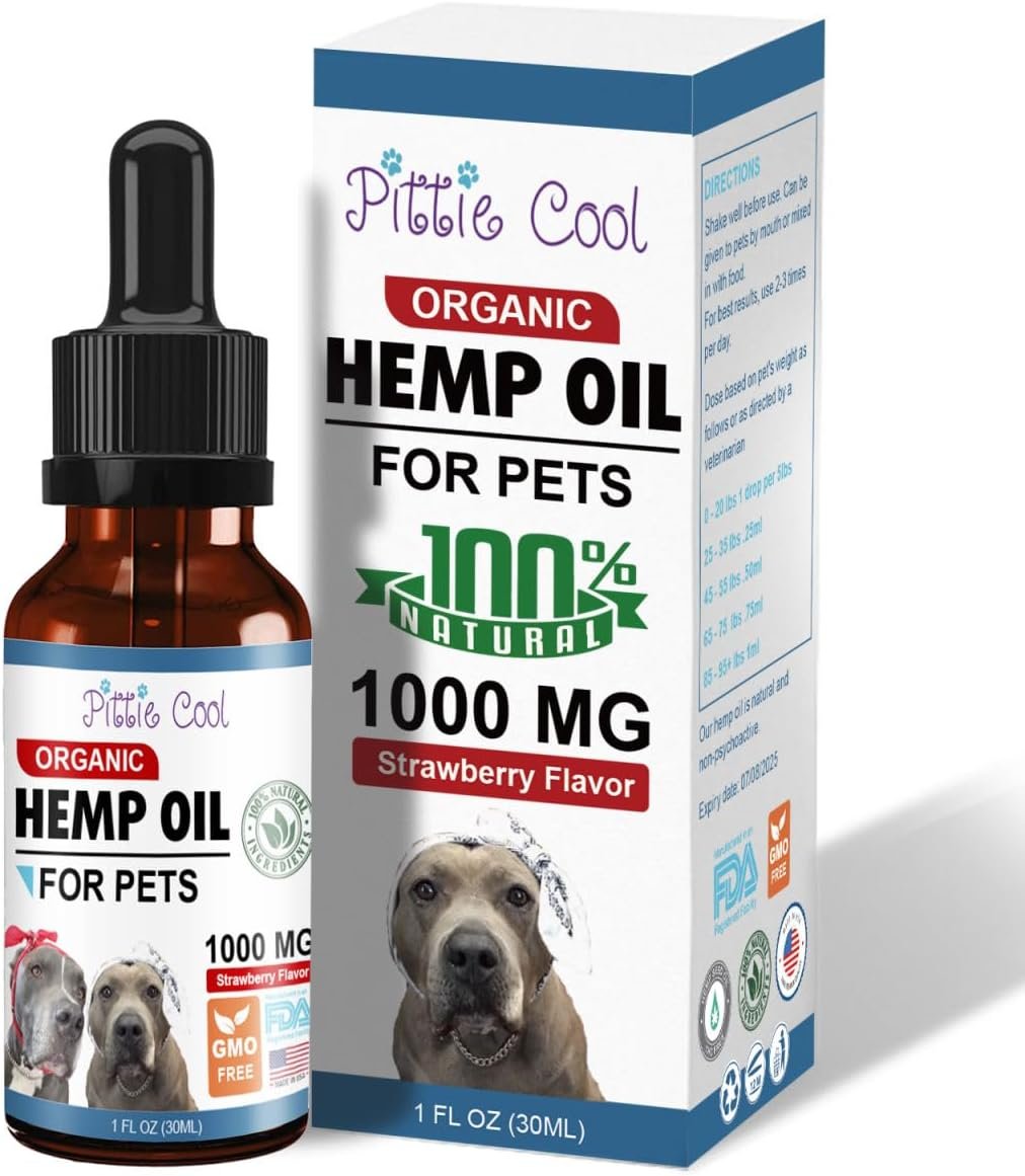 Hemp Oil for Pets, Strawberry Flavor, 1000MG, Natural, Hips & Joints, Calming, Anxiety