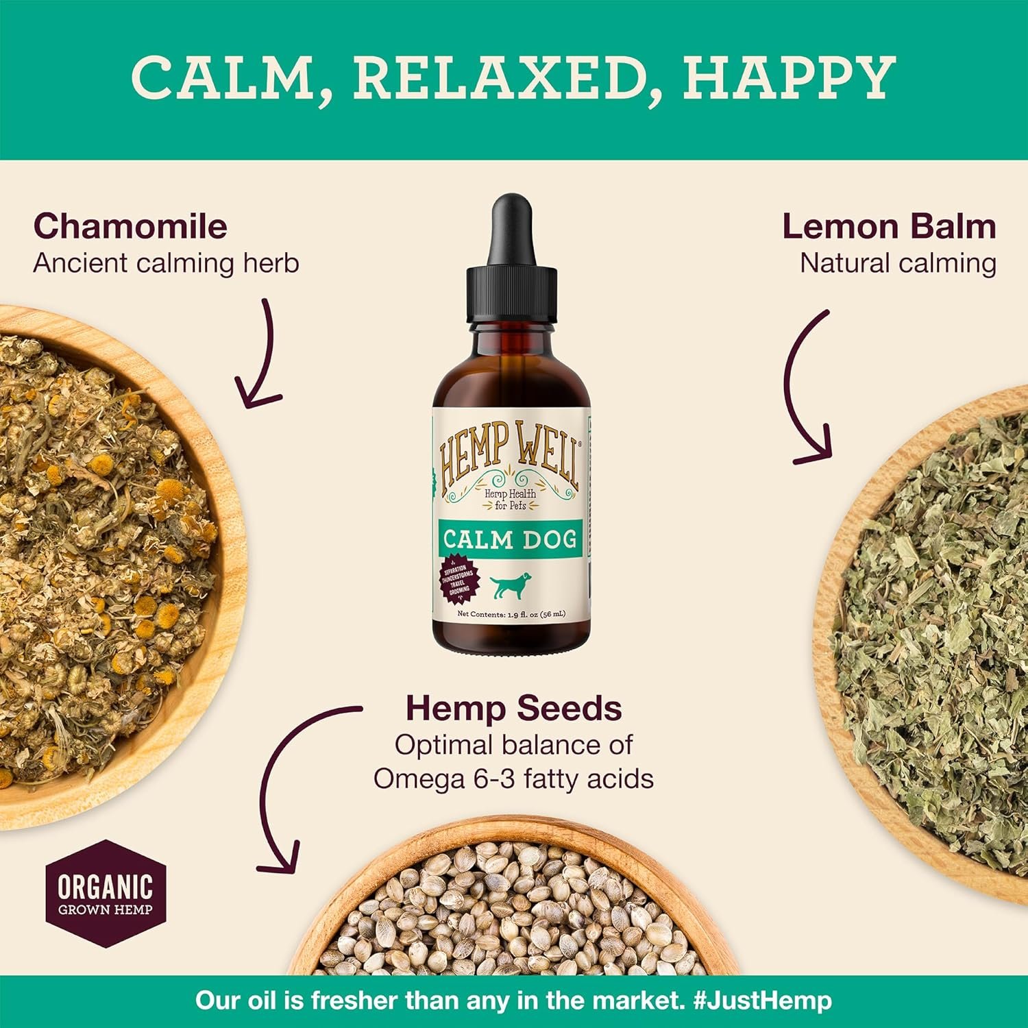 Hemp Well Calm Dog Oil Relieves Anxiety, Calms and Relaxes Your Dog, Aids in Stress Relief and Behavioral Issues, Organically Sourced (2 Ounces) – Dog Melatonin and Hemp for Small and Large Dogs