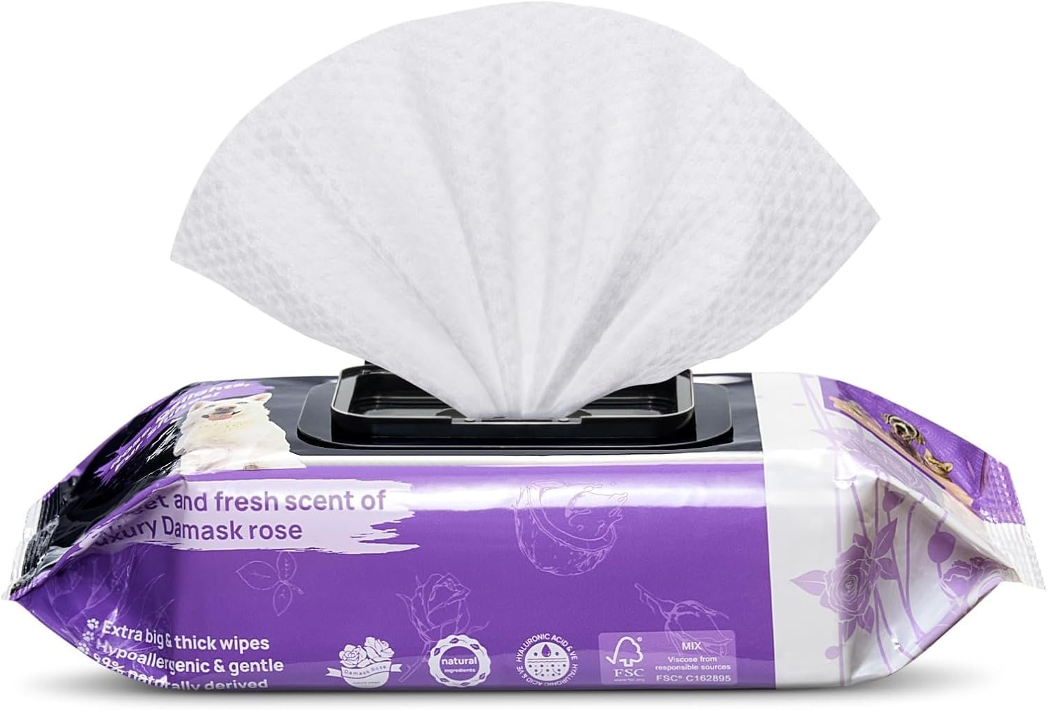 Effectively Cleaning, Fresh Smell. HICC Pet’s proprietary refined organic coconut oil fermented technology, which rich in MUFAs. Powerful effective cleaning, moisturizing, and deodorizing. Our pet wipes for dogs and cats, add the Damascus rose water and luxurious rose fragrance. Support fresh cleaning pets anytime, anywhere.