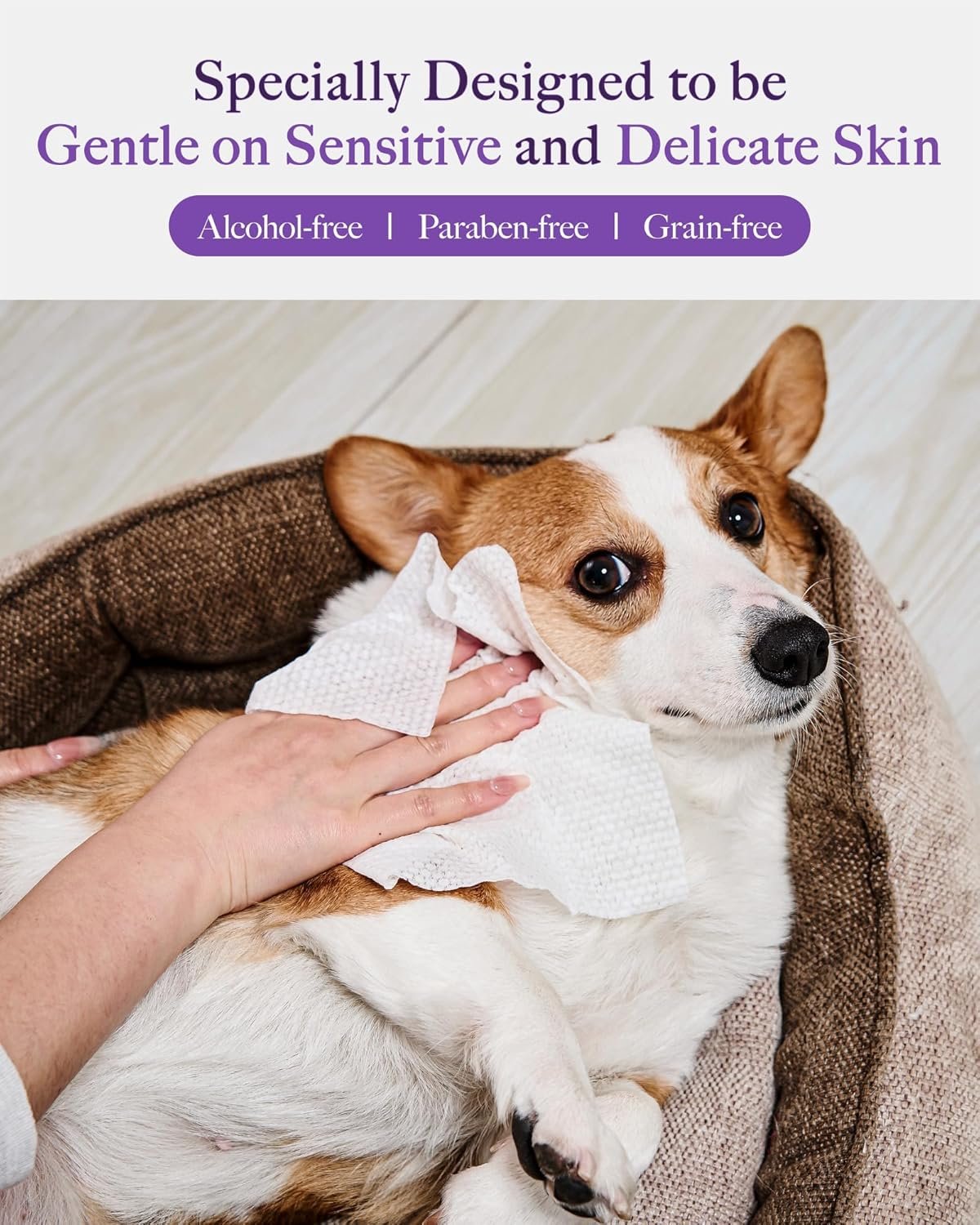 Safe Formula For Pets. Made with EDI-purified water dog cat wipes that complies with the US Pharmacopoeia and naturally derived ingredients. Alcohol-free, with no parabens & fragrances.