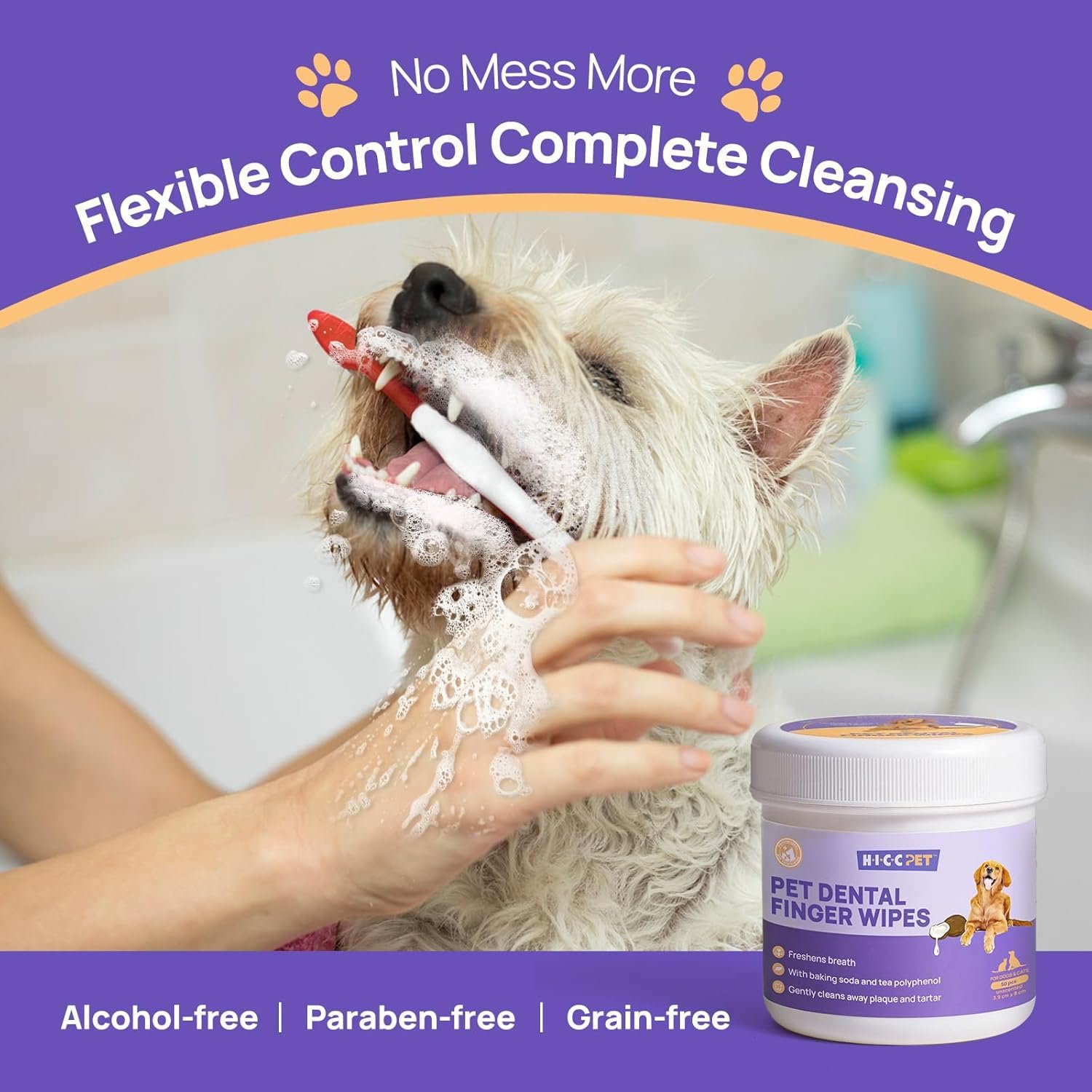 Clean Teeth & Gum. Just simply wipe with gentle cleaning dog teeth wipes, and instantly remove tartar and plaque. Giving your dog teeth cleaning, healthier gum, and improved oral health anytime, anywhere. No hard toothbrush, no mess.