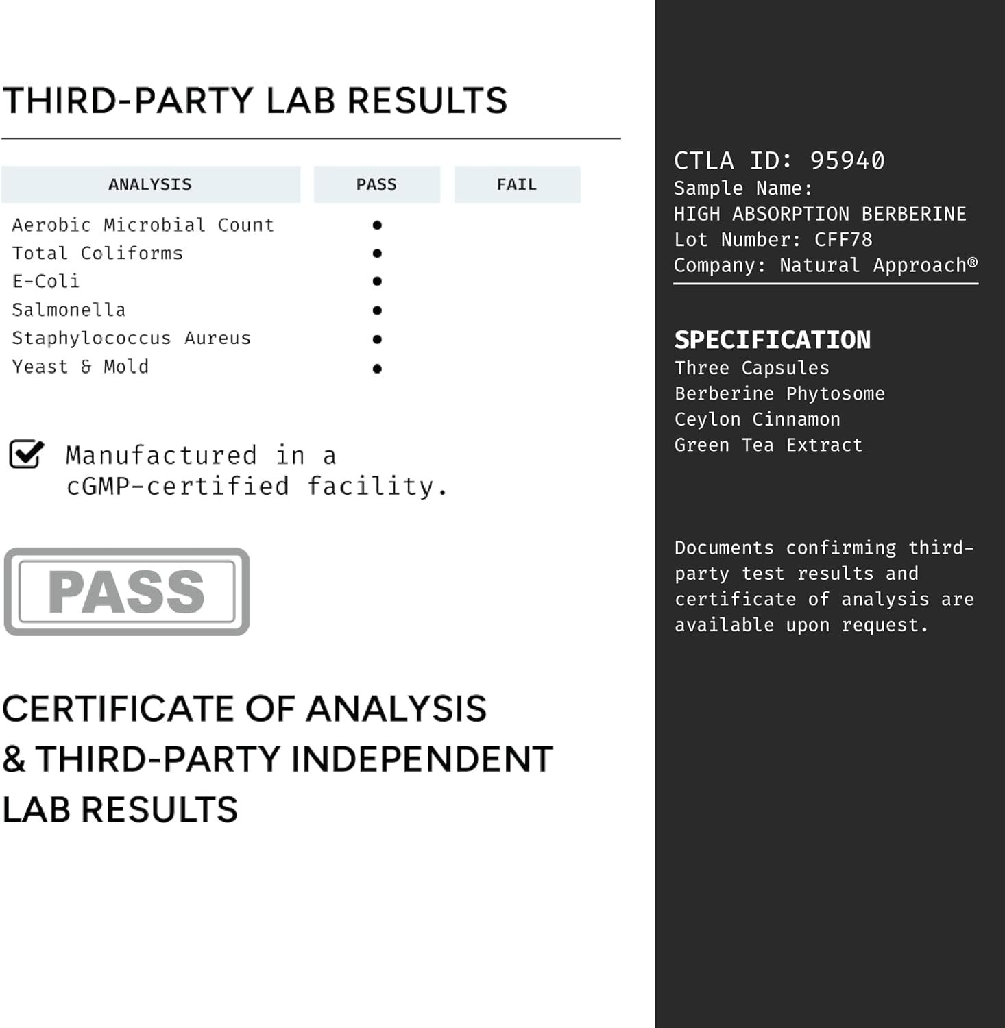 THIRD-PARTY TESTED: Tested & trusted ingredients. All Natural Approach ingredients are third-party tested for quality, purity, & potency before and after the manufacturing process to ensure their high quality, efficacy, and safety. All Natural Approach products are manufactured in a USA cGMP Certified facility.