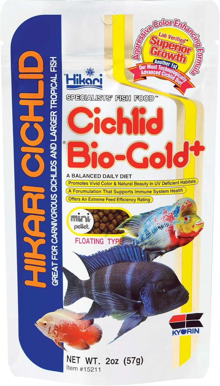 Color enhancing, daily diet for all types of cichlids and larger tropical fish. Great for Oscars too! Hikari Cichlid Gold contains special color enhancers designed to bring out the natural beauty and proper form.