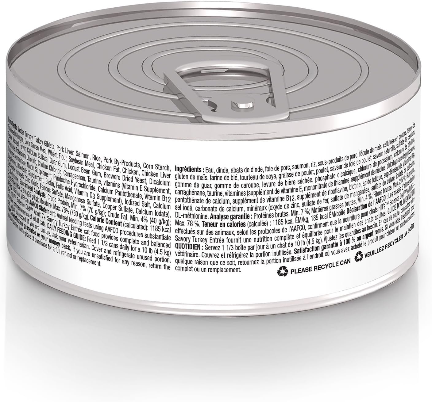 Your cat may be getting older, but the need for love and interaction doesn’t change. Hill’s Science Diet Adult 7+ Savory Turkey Entrée wet cat food is specially formulated to fuel the energy needs of aging cats during their golden years. Made with purposeful ingredients for a flavorful, nutritious meal, this mature cat food made from natural ingredients contains quality protein for muscle maintenance and antioxidants for lifelong immune support.