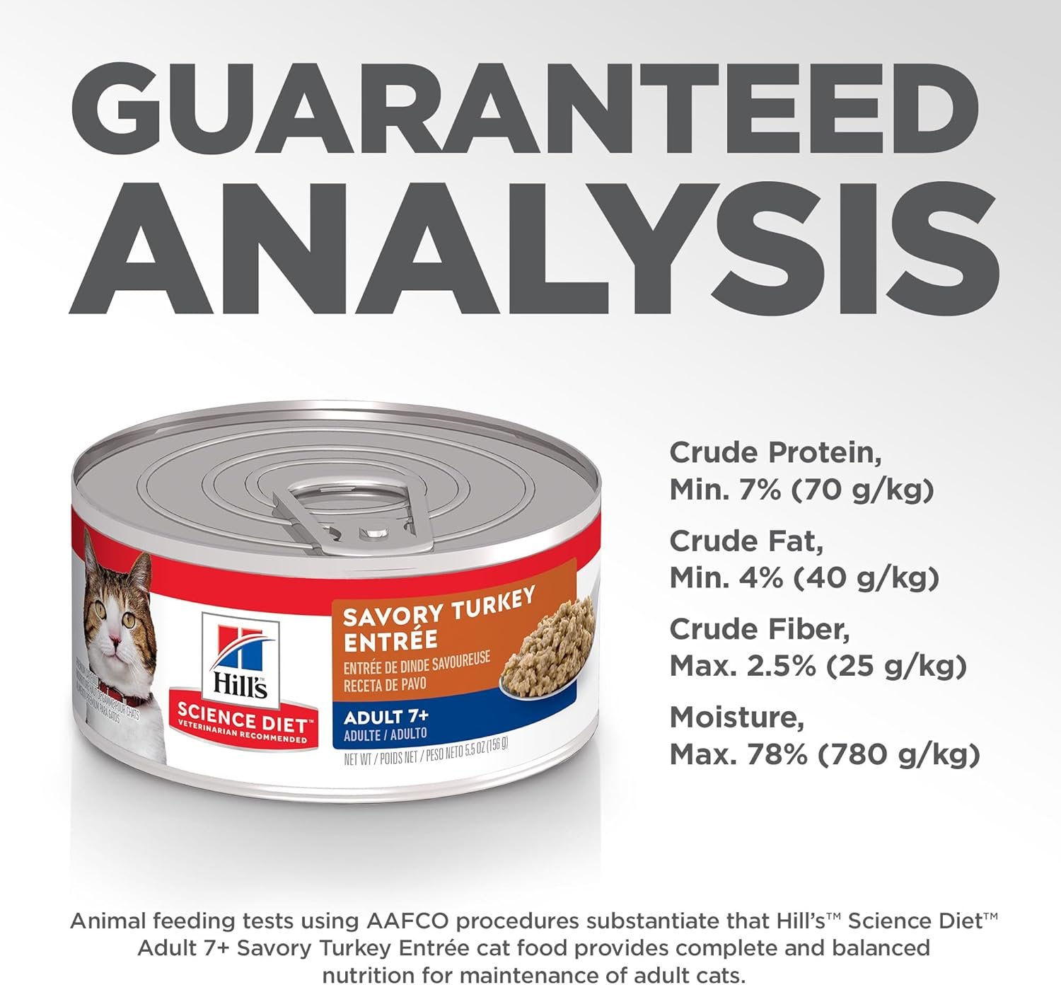 Hill’s Science Diet Adult 7+, Senior Adult 7+ Premium Nutrition, Wet Cat Food, Turkey Minced, 5.5 oz Can, Case of 24
