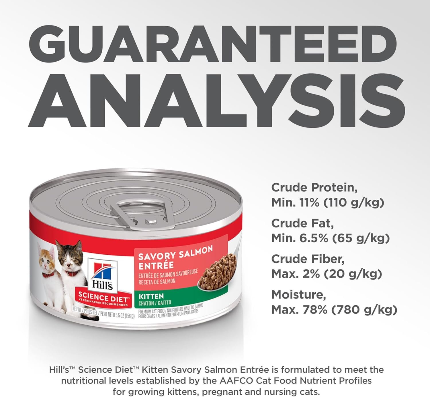 Hill’s Science Diet Kitten, Kitten Premium Nutrition, Wet Cat Food, Salmon Minced, 5.5 oz Can, Case of 24