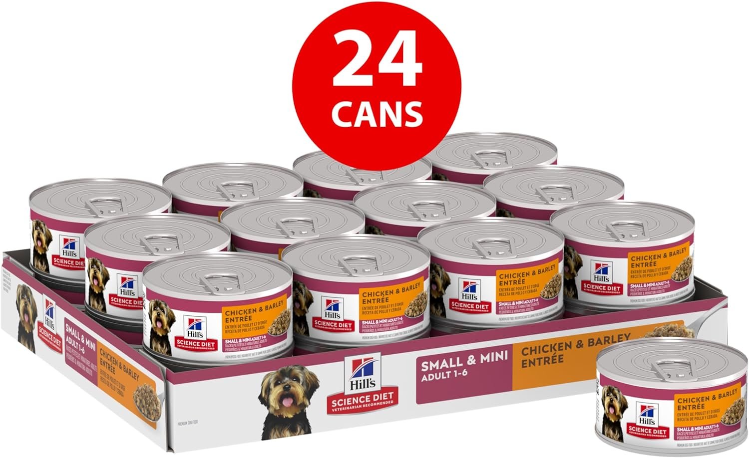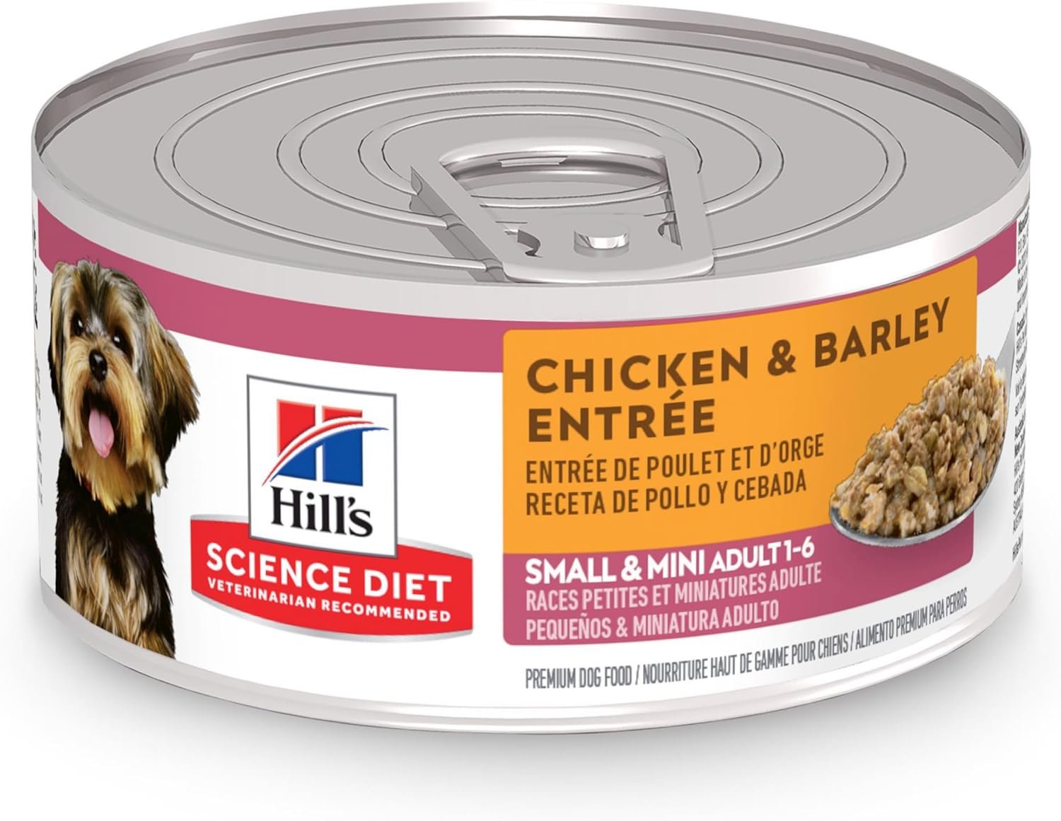 Even little dogs have big appetites, and your small-breed dog is no exception. Hill’s Science Diet Adult small paws chicken & Barley entrée dog food is tailored nutrition for the unique needs of small & Mini dogs during the prime of their life. Packed with quality protein to maintain lean muscle, this Canned dog food made with natural ingredients contains an antioxidant blend specially formulated for your little dog. There’s more to love with the new look of science Diet. Some of our products also have new names & new formulas. Not recommended for puppies, pregnant or nursing dogs.