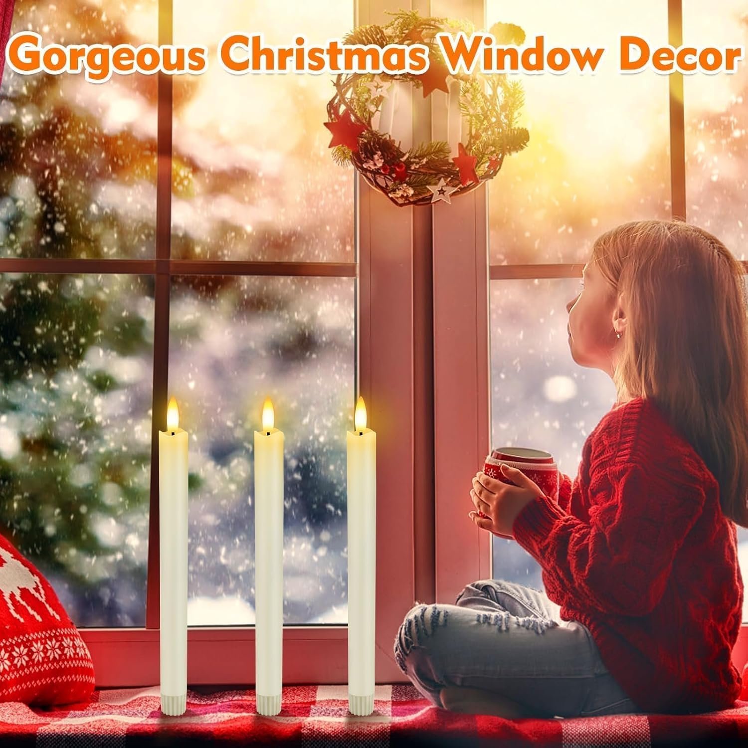 Gorgeous Window Decorations: The beautiful fake candles measure 9.6×0.78 inches and require 2 AAA batteries (not included). Designed with soft rubber base, makes it match with most candelabra (it can also stand alone). Perfect as Halloween candles and Christmas candles, add more festive touch to your home. Good choice as Thanksgiving/Christmas gifts, show your best wishes for family and friends.