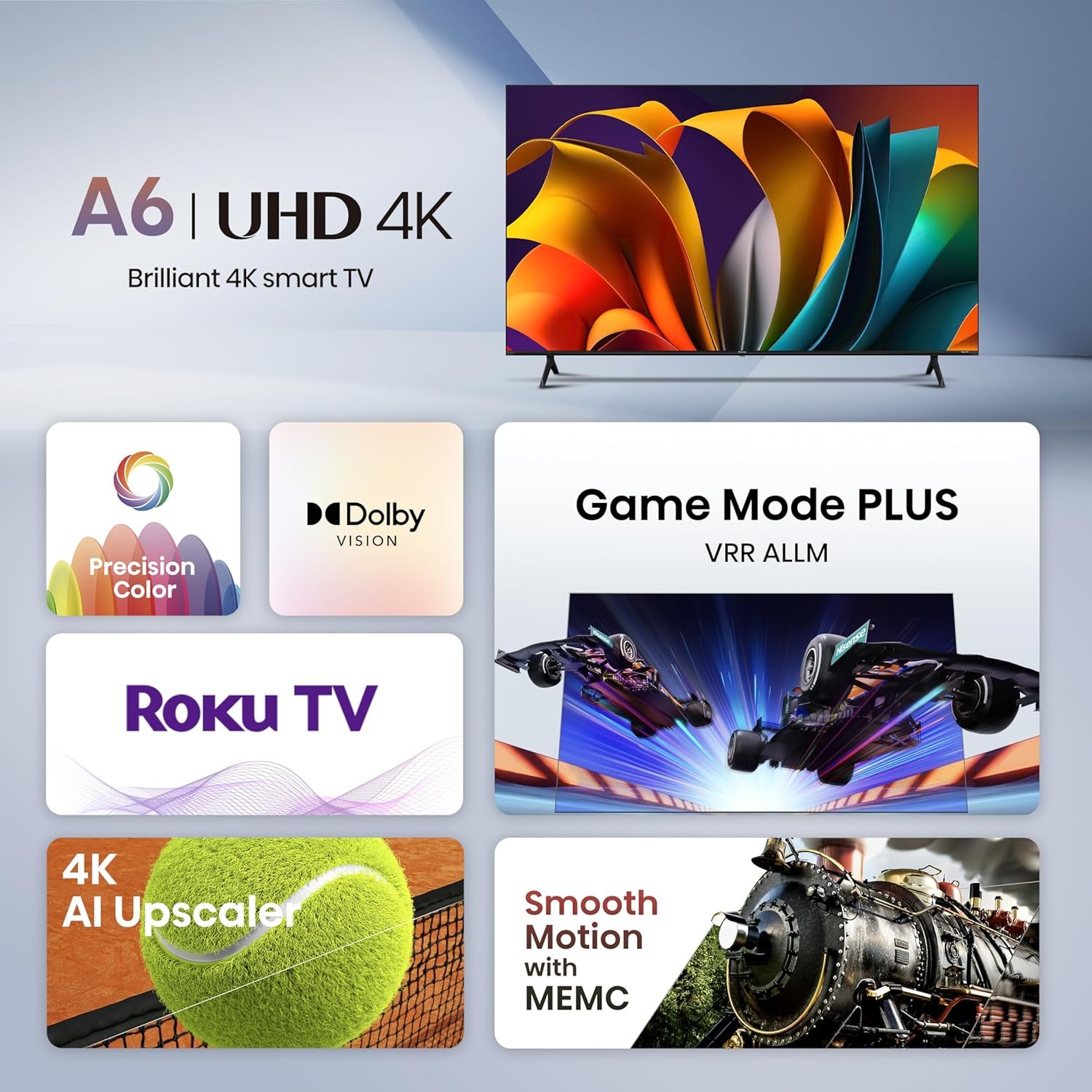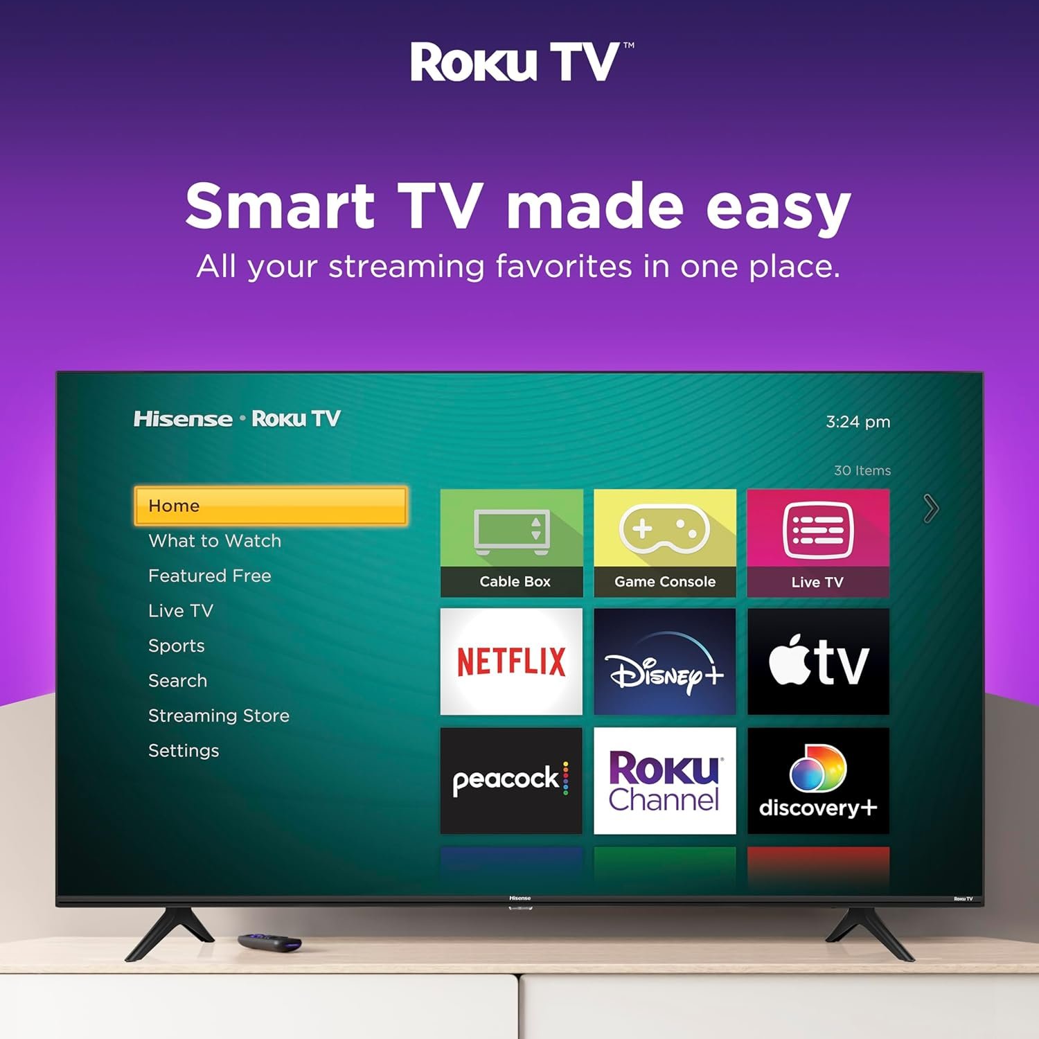 ROKU TV: Hisense Roku TV makes it easy to watch what you love with built-in streaming. Enjoy endless free, live and trending TV with all the most popular apps and new features added automatically. Available in lots of sizes, there’s a Hisense Roku TV for everyone and every room.