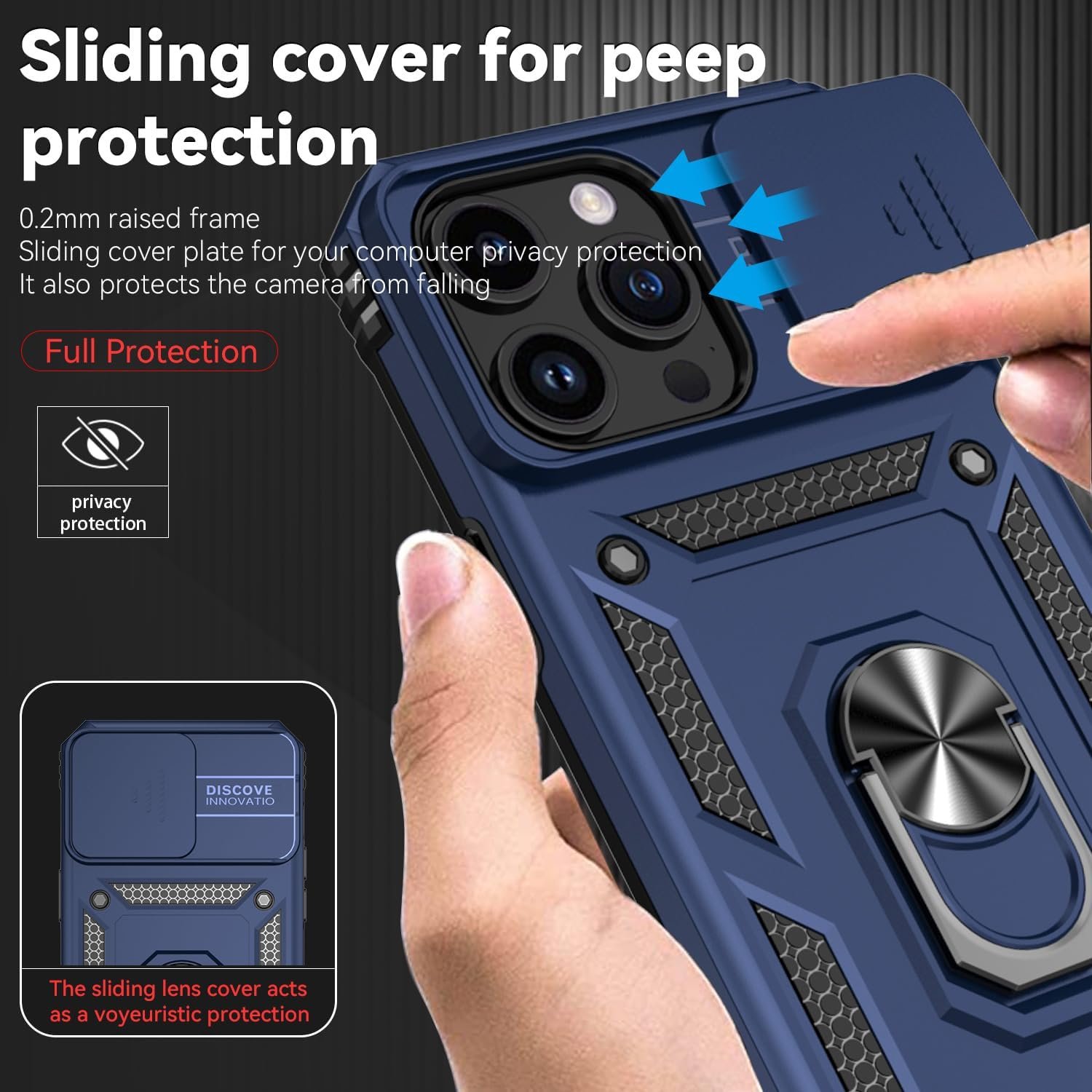 🌟Case with Camera Cover & Kickstand, Slide Lens Protection + 360° Rotate Ring Stand, Impact-Resistant, Shockproof, Protective Bumper,iPhone 2023 New Case 6.7 inch