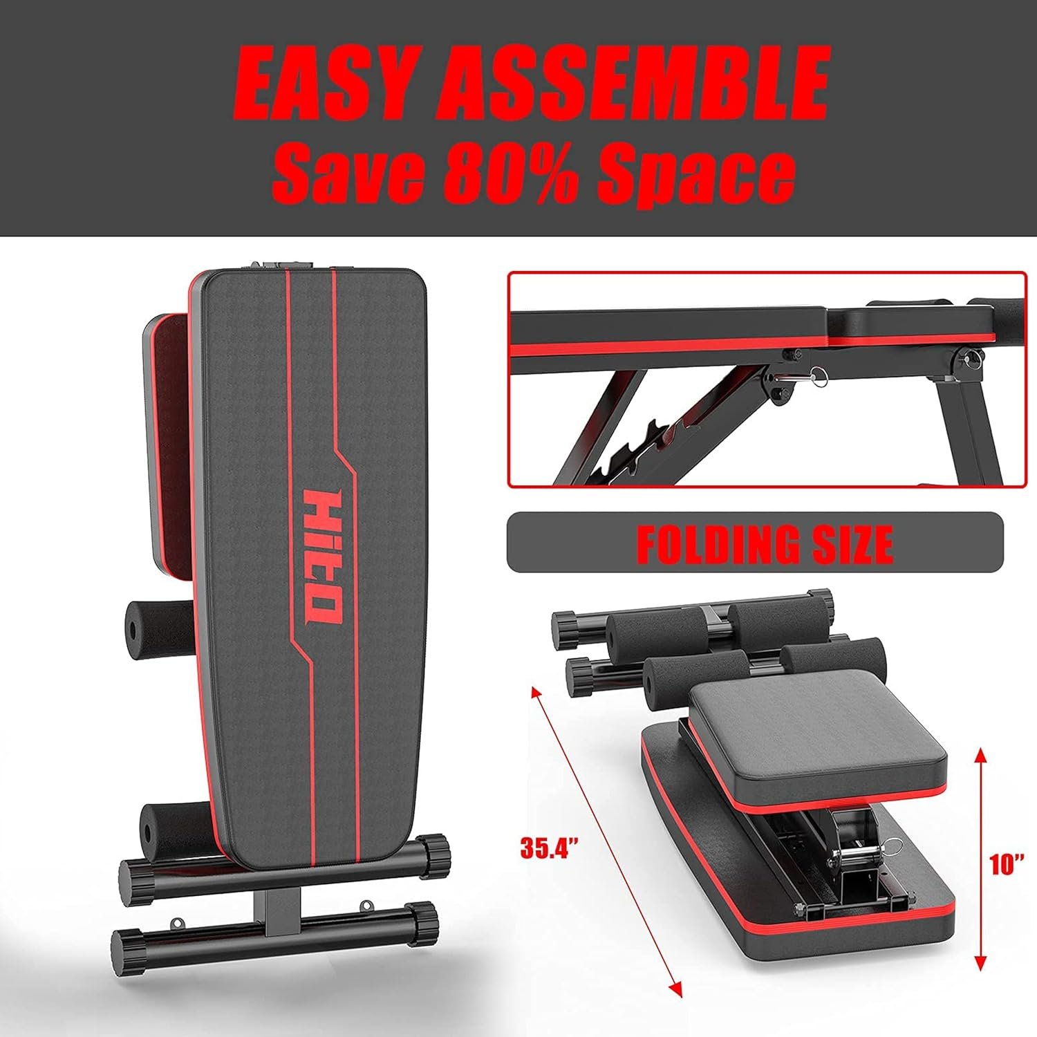 💪EASY ASSEMBLE & STORAGE: The folding bench workout with a folded size of 35.4″ L x 15.75″ W x 10″ H, you can save 80% space. The folding bench press is ideal for apartments, small offices, or spaces without taking up too much space.