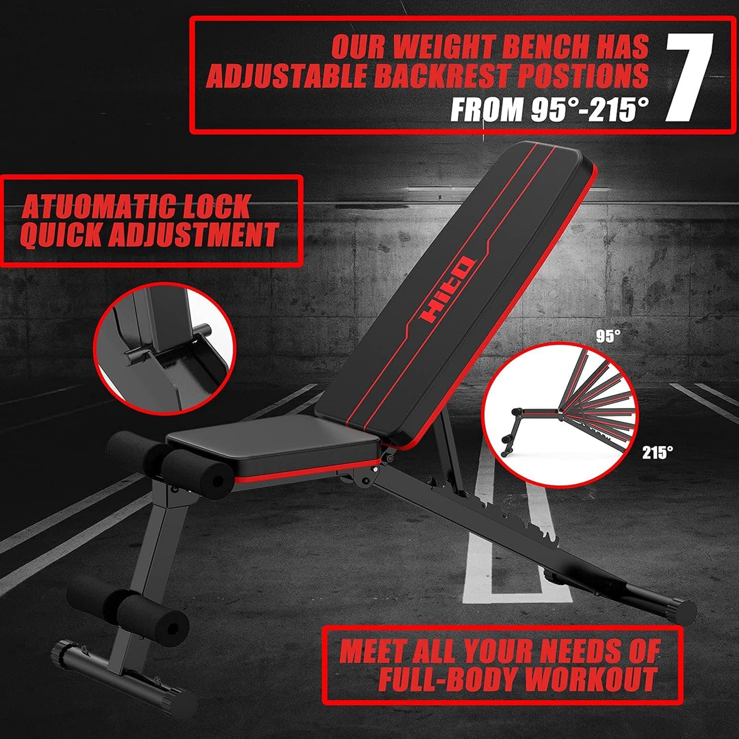 💪ADJUSTABLE DUMBBELL BENCH: The adjustable gym bench With 7 adjustable backrest positions, which is very suitable for the biceps curl, bench press, shoulder push, abdominal muscle training, leg exercise, dumbbell push, sit-ups, etc.