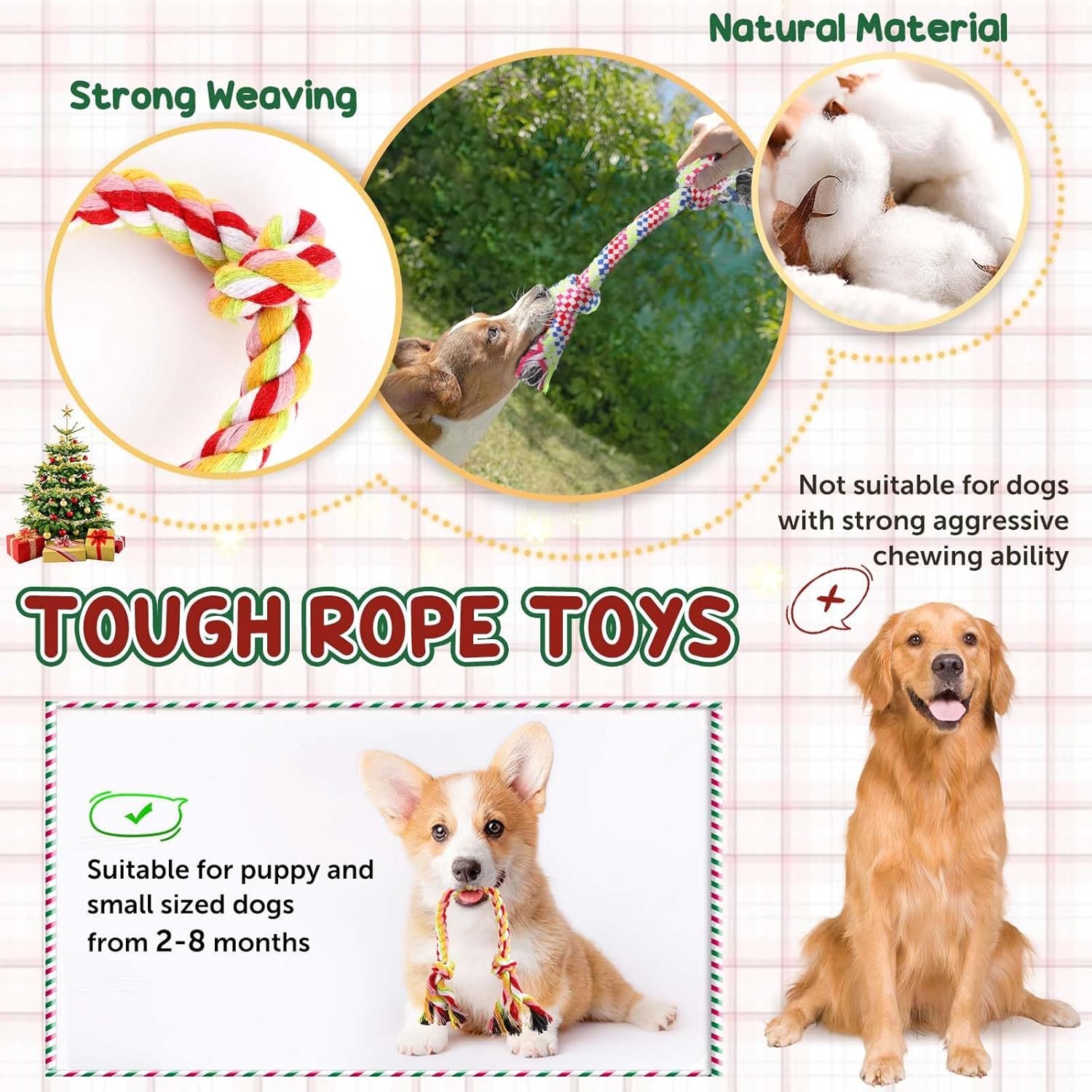 🐾【Safe & Non Toxic Material】Christmas Dog toys for small dogs are made of 100% natural premium PP cotton, Dog squeaky toys are made of double-stitched seams plush and a sturdy inner liner. More durable and chewable puppy supplies allow puppies to have more fun. Not suitable for medium to large dogs with aggressive chewers.