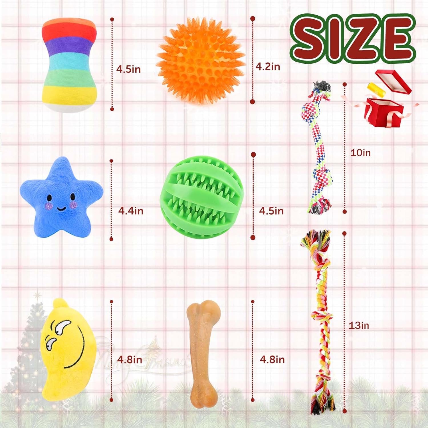 Our set includes a variety of toys such as plush toys, chew toys, rope toys, and food leakage toys to keep your dog entertained, occupied, and mentally stimulated.