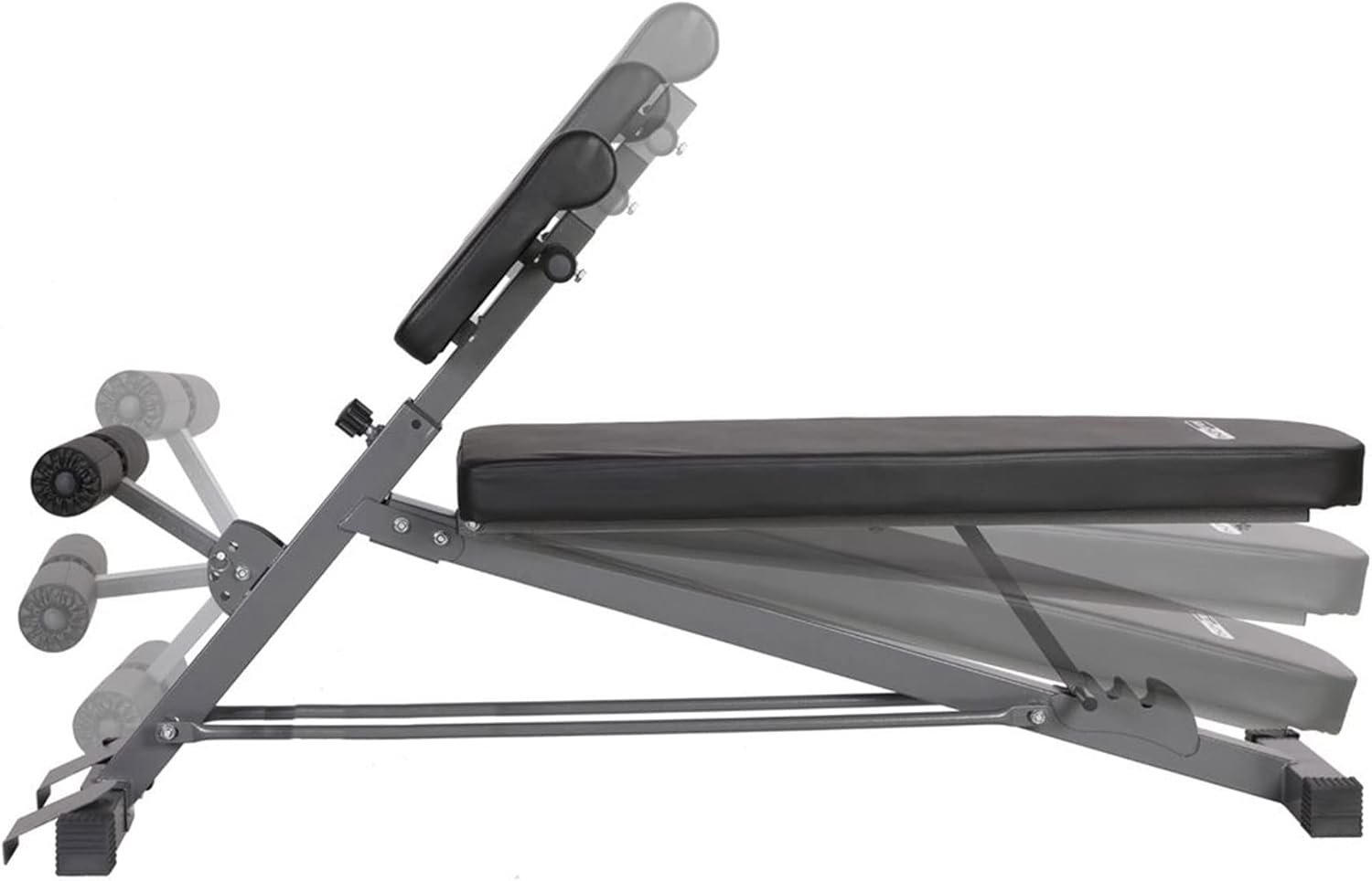 Make the most out of every curl, press, and pull with the HolaHatha Adjustable Multi-Functional Exercise Bench. Its sturdy construction ensures a safe and effective workout, whether you’re a beginner or a seasoned fitness enthusiast. This versatile exercise bench performs the duties of a decline bench and flat bench with multiple angles with up to 20 combinations. Easily perform dumbbell exercises, situps, crunches, or pushups to tone your arms, abs, back, chest, glutes, hamstrings, and core. The durable all-steel design provides unparalleled support so you can lift confidently, and ribbed rubber feet ensure the exercise equipment stays put as you workout. The benchtop features thick, high-density foam padding and soft vinyl upholstery that provides comfort and safety as you tone, and thigh supports and foam ankle rollers offer the ideal place for your legs to grip to ensure proper form. Different angles help you workout every part of your body to achieve your ideal look. With a sturdy, welded frame and wide feet to stop shifting, the powder-coated steel design ensures a lasting addition to your home gym. When not in use, the frame folds to a compact size for easy storage making it a must-have for your work from home fitness routine. Exercise your entire body and ensure proper form using the durable and versatile Adjustable Multi-Functional Exercise Bench from HolaHatha. This home gym equipment is designed to support a wide range of exercises, helping you target different muscle groups with ease.