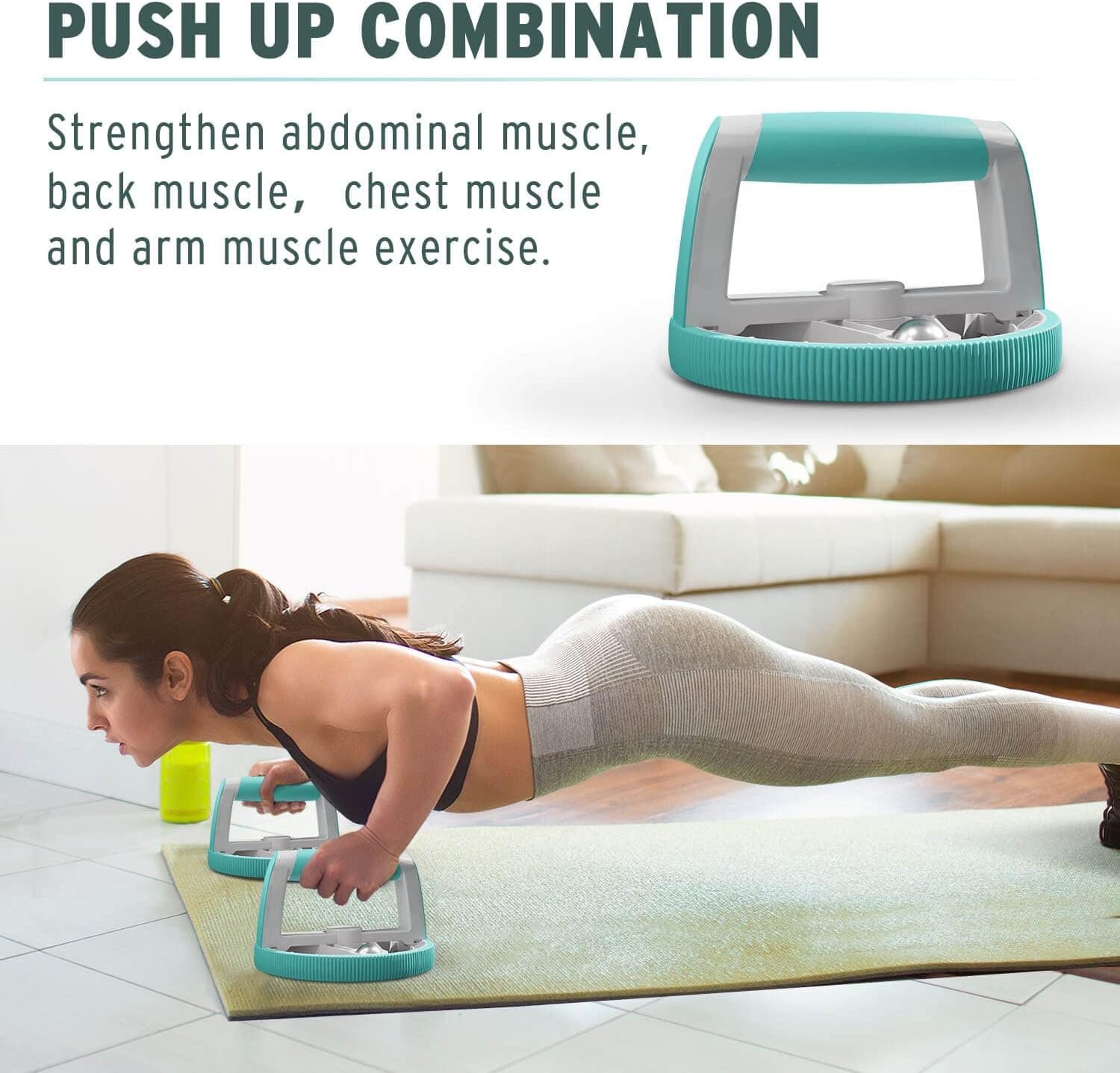 Brand: Holleyweb Color: Pink, Green Material: PP, TPR, TPE Advantage: Silent, Dual wheels, Wider wheelbase, No wobble, Multiple combinations Combination form: Abdominal wheel, Push up Bars, Dumbbells, Resistance Bands Exercise type: Kneeling, Standing, Leg Training, Yoga, Back, Light Intensity Training
