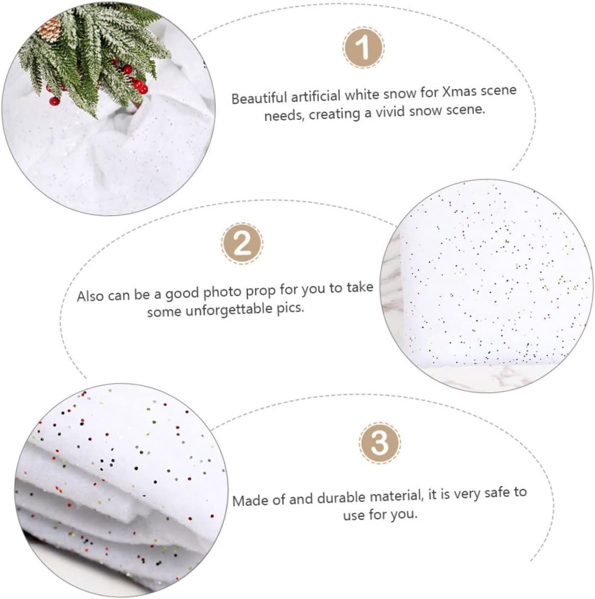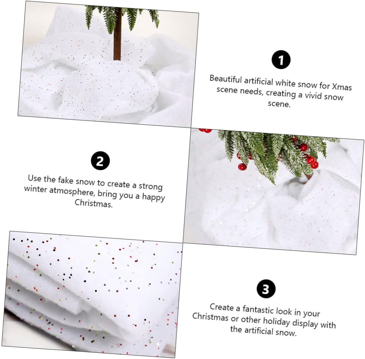 Fake snow decor: fake indoor snow blanket – use the fake snow to create a winter atmosphere, bring you a happy christmas.