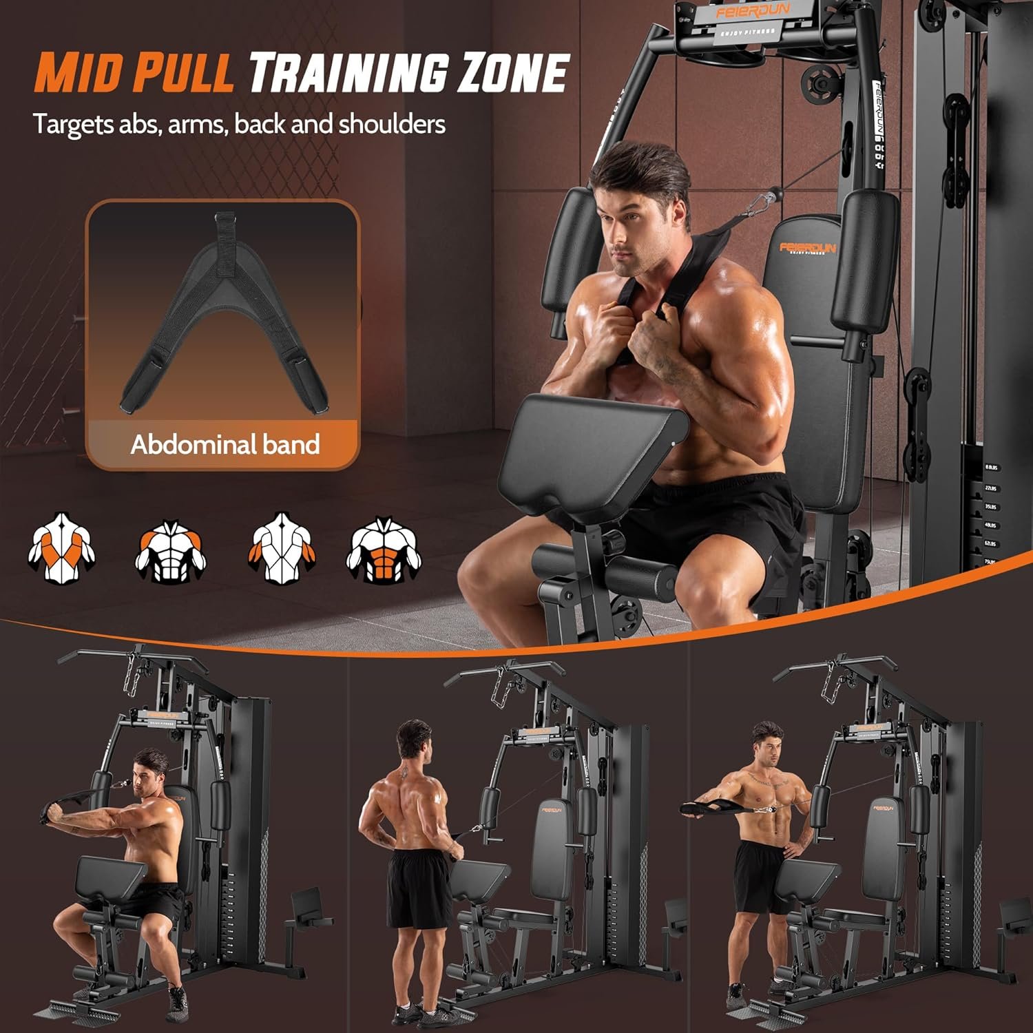 Comprehensive Training Zone: Come with abs bands, pulley system, leg extension, non-slip bar and reversible anti-skid pedal; This zone allows for leg workouts, bicep curls, and seated row, delivering a comprehensive lower body and core training experience