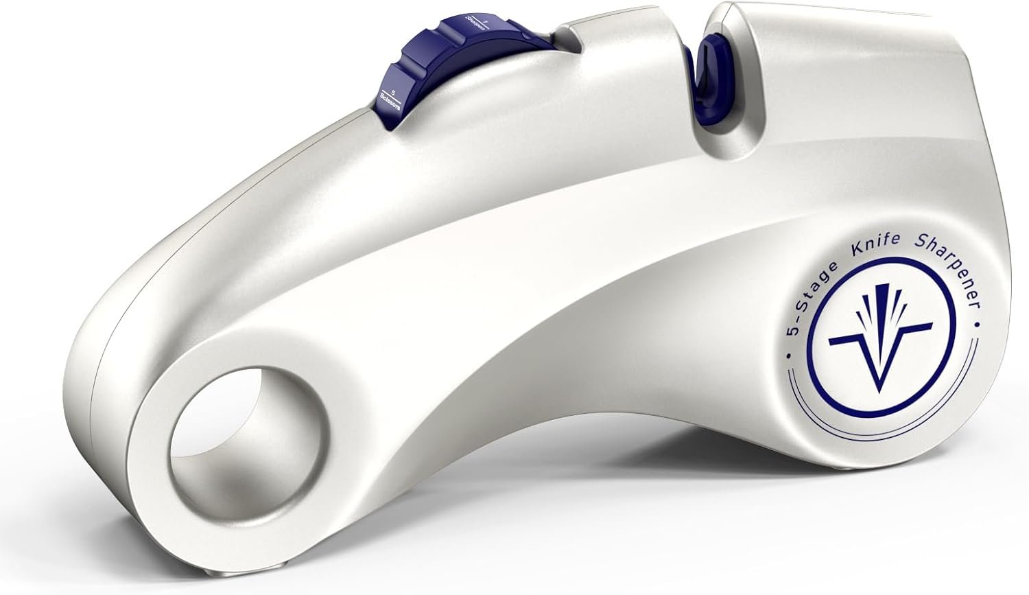 đăMaterial ComponentăWith our incredible 5 slot system, we are taking myth out of knife sharpening. “1”-Coarse slot(Super Carbide blades) is used for straightening & repairing damaged blades, “2”-Daily Prep slot(resin bond diamond) to sharpen the knives,”3″-Daily Fine slot(Fine ceramic) for clean polishing & Serrated slot for sharpening serrated blades. “4”-Bread knife(Fine ceramic) and “5”-Scissors(resin bond diamond)