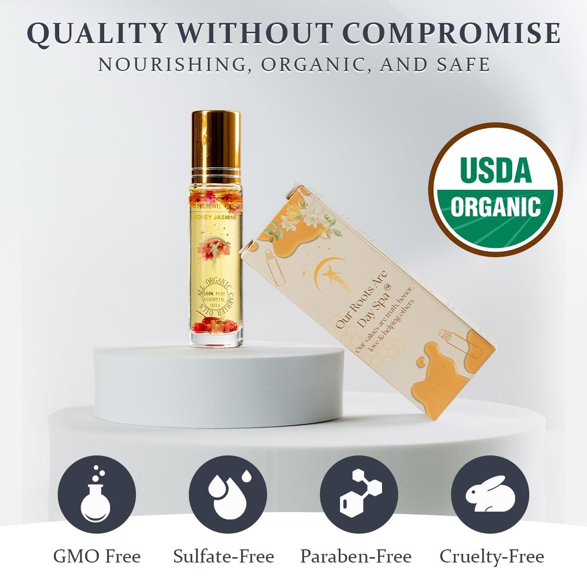 Honey Jasmine Cuticle Oil Organic Roll-On – Hydration & Strength w/Coconut, Jojoba & Rosehip for Dry Nails – Travel-Ready Roller, Moisturizing Boost Serum Treatment for Radiant Nail Growth