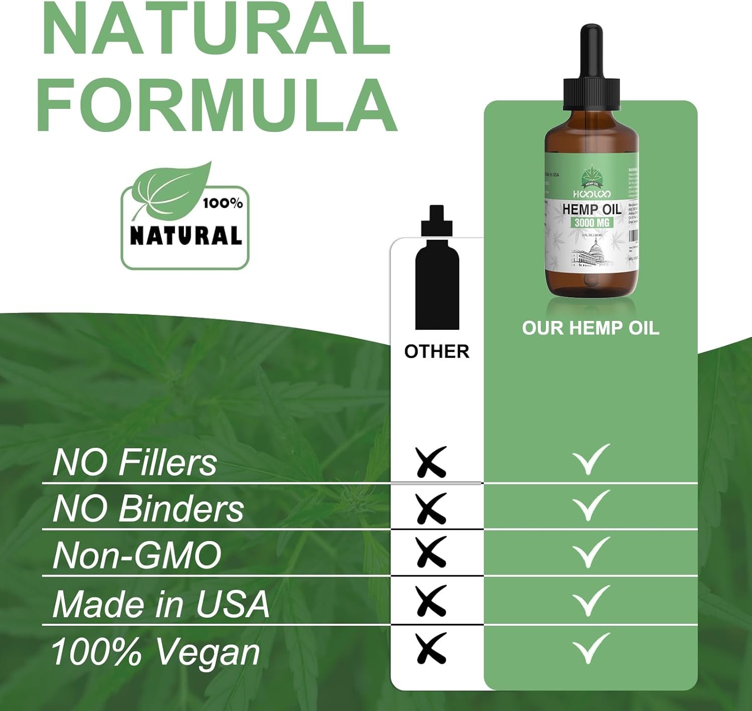 HOOLOO brand comes from America, located at California and is focused on providing safe, effective and nutritious hemp products. The effective ingredients are hemp oil 3000MG which is natural, powerful, maximum potency. Third-lab tested to ensure its purity and safety.