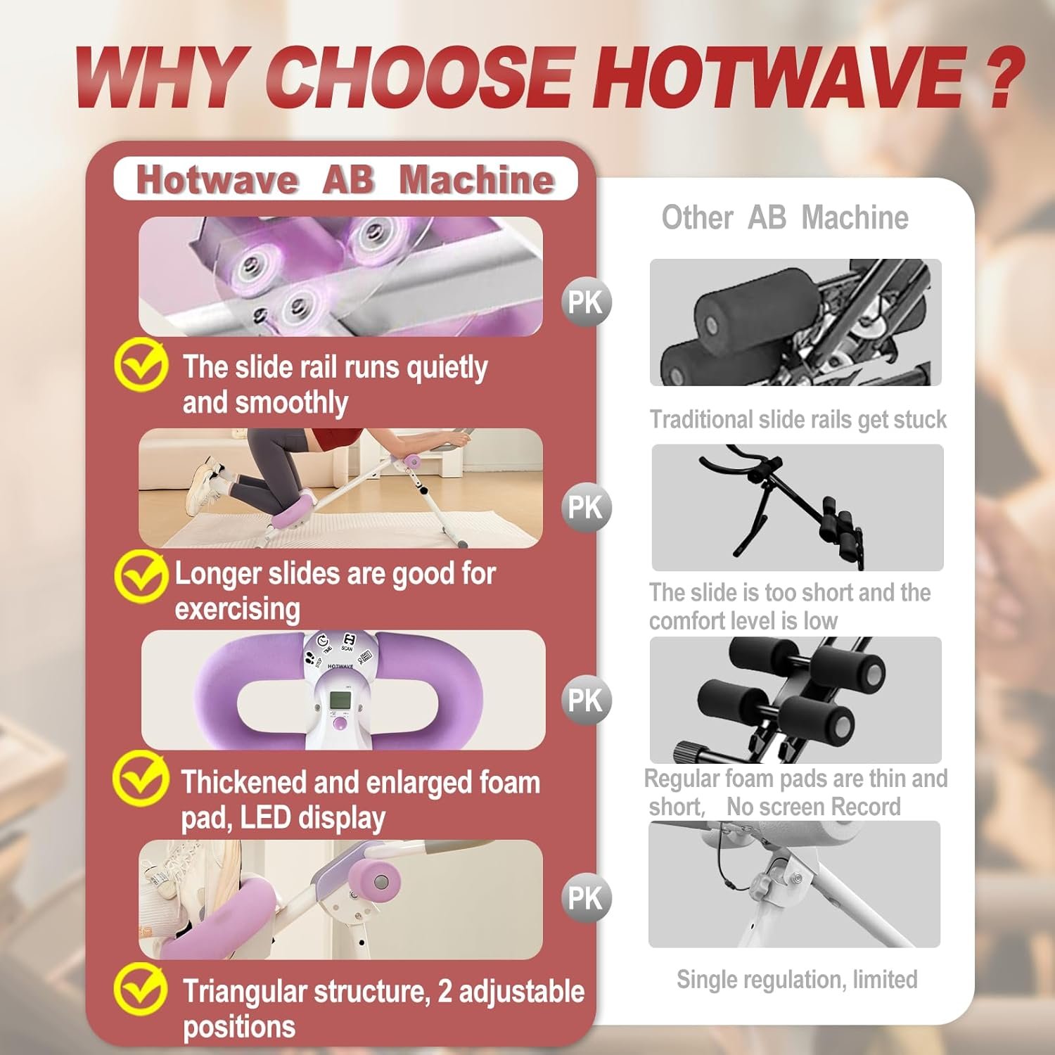 【Efficient Body shaping】Hotwave ab crunch machine works stomach,arms, legs and glutes. Multi-function slider Strengthen the core to help you shape the perfect hips, slim waist, and flat stomach. Hot beach body.