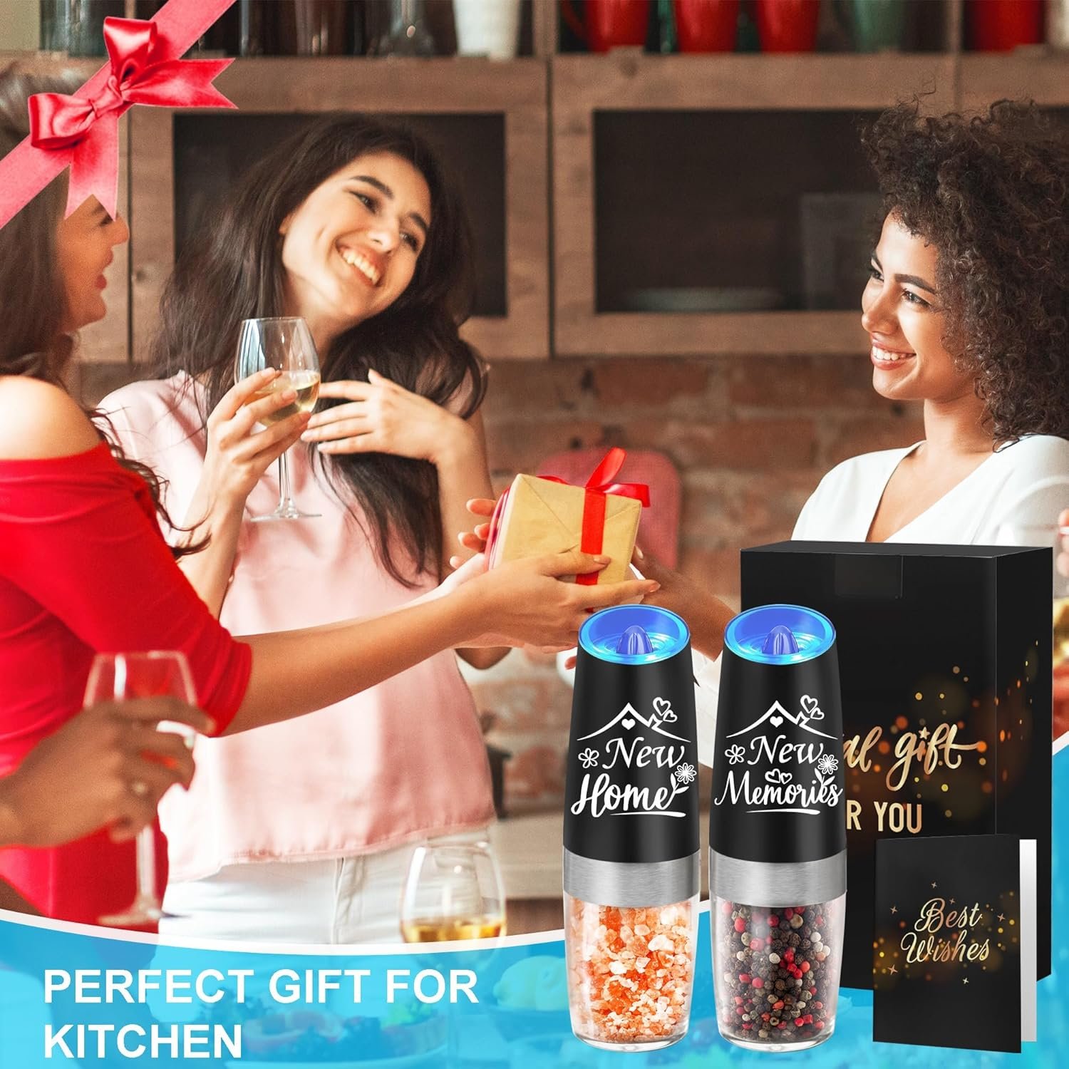 GIFT DESIGN – You will receive a black gift box containing electric salt and pepper grinder set*2, cleaning brush*1, and gift card*1. They are special and practical housewarming gift, housewarming gifts new home.