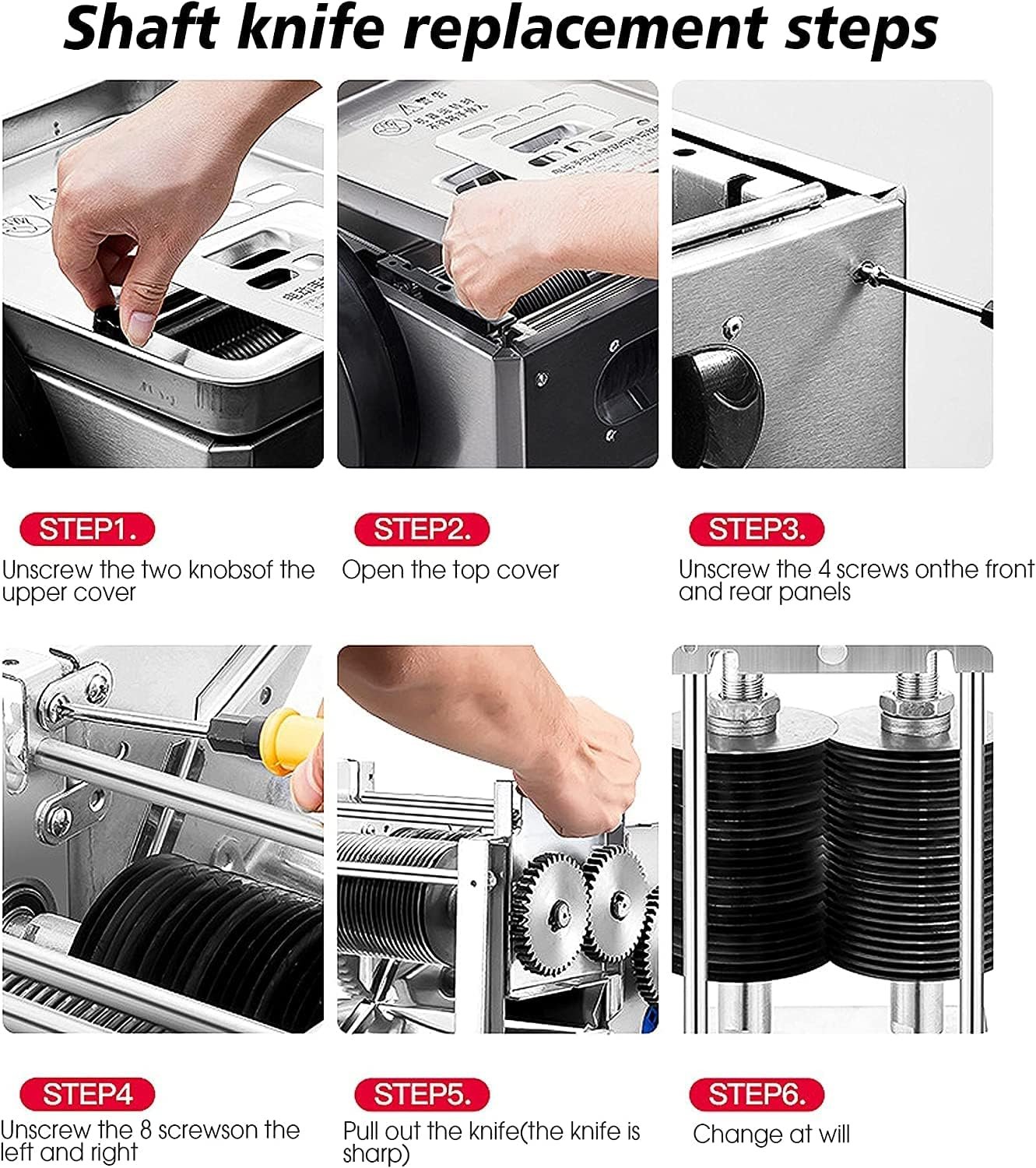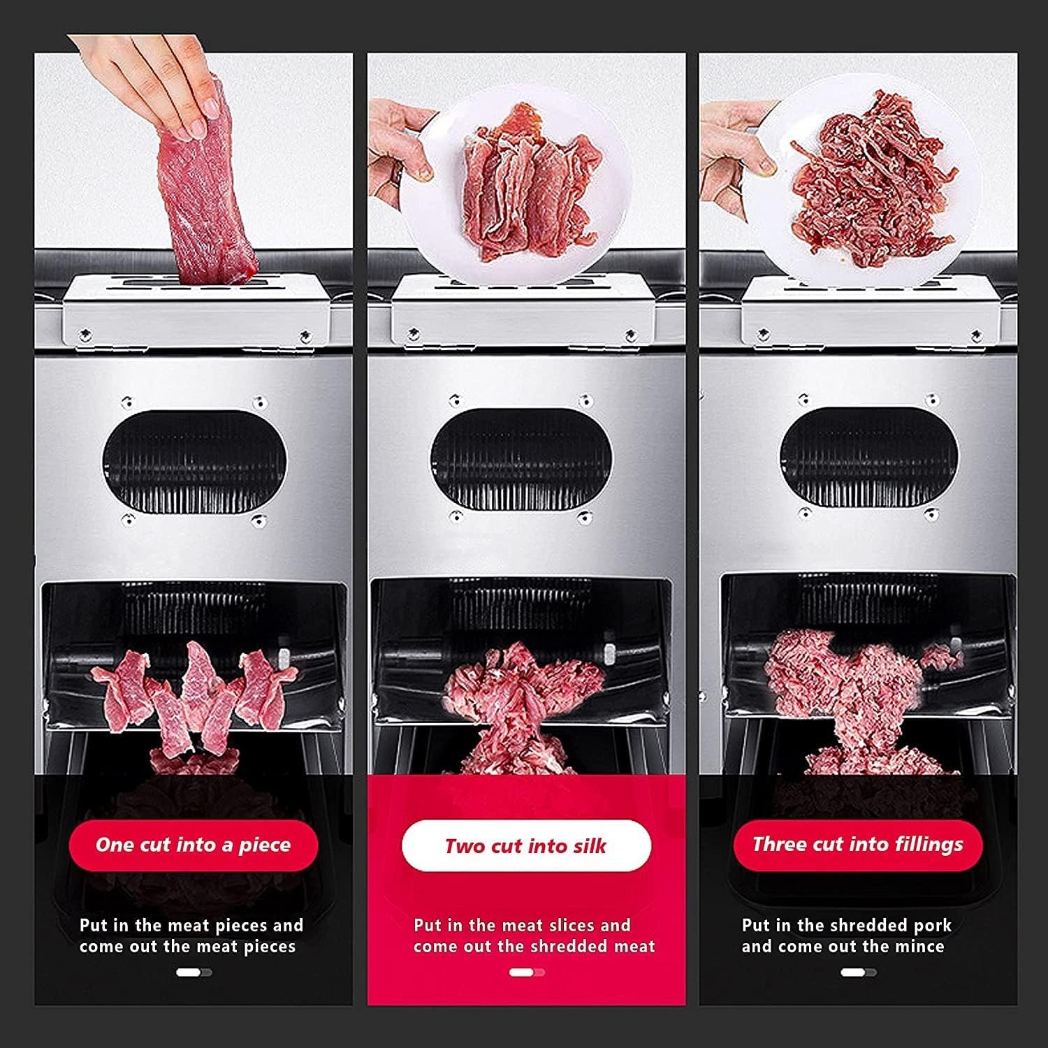 [High efficiency]: The electric meat cutter uses 850W motor, which is full of power, and the cutting efficiency can reach 150KG/H. It saves time and energy in slicing, shredding and stuffing.