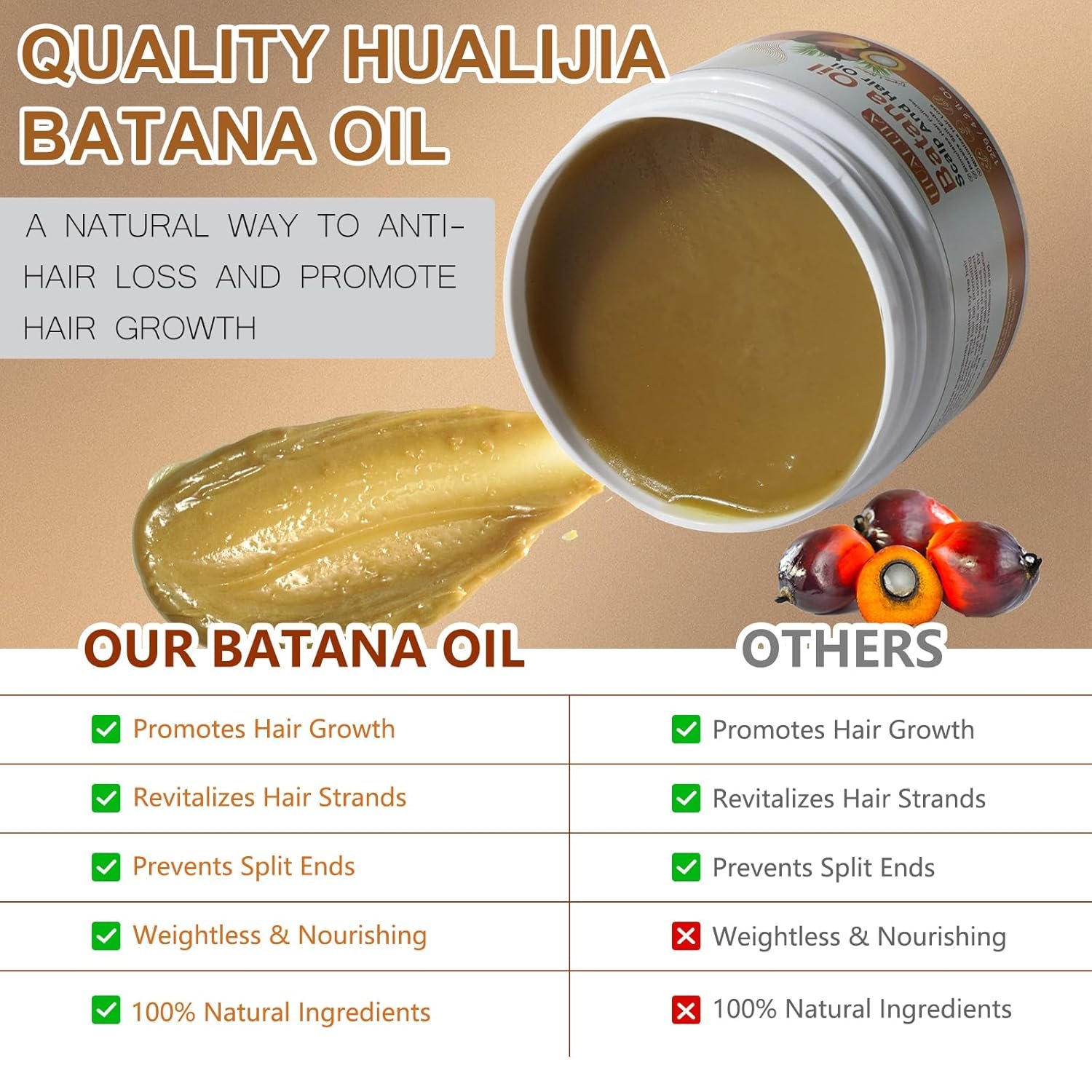 – 100% Organic and Natural Batana Oil: Our Batana Oil is 100% organic, free from additives, and pure.