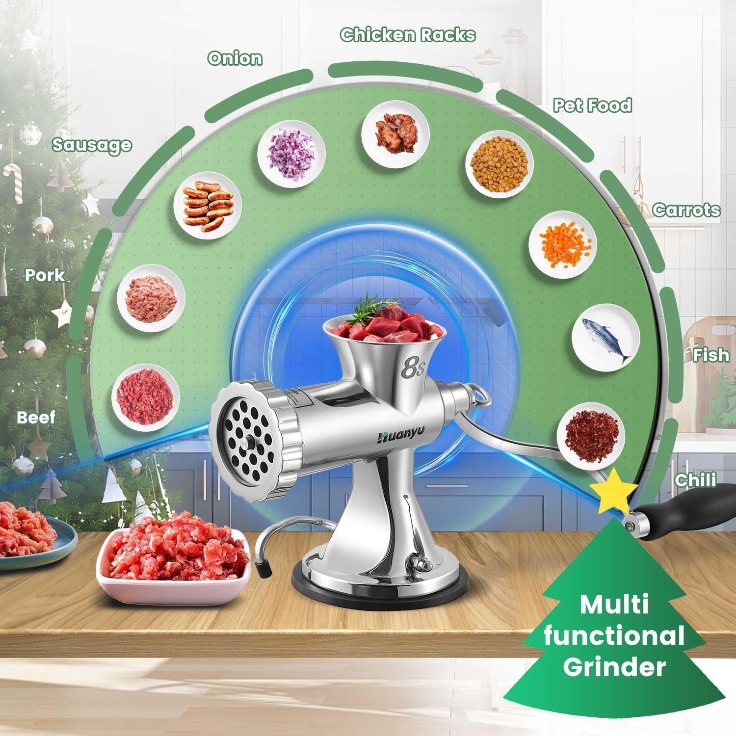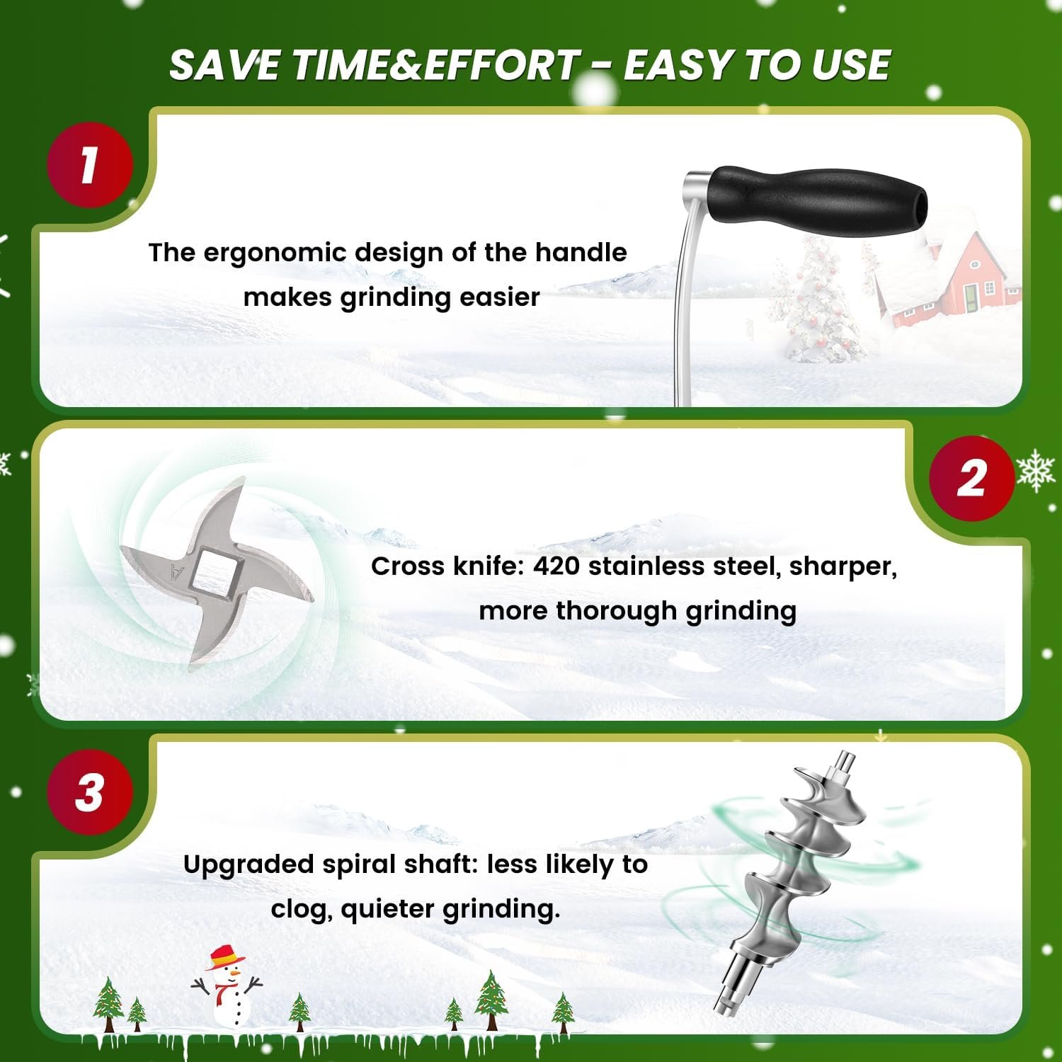 [Healthier and fresher] Manual meat grinder simulates the process of manual meat mincing, which greatly retains the original taste of the meat, as well as the nutrition of the meat itself, does not damage the fiber of the meat. Keep the meat fresh, fully lock in the texture and nutrition of the meat. The cutting blade is sharp enough and will not slip when the meat is grinded, which greatly improves the efficiency of the meat grinder