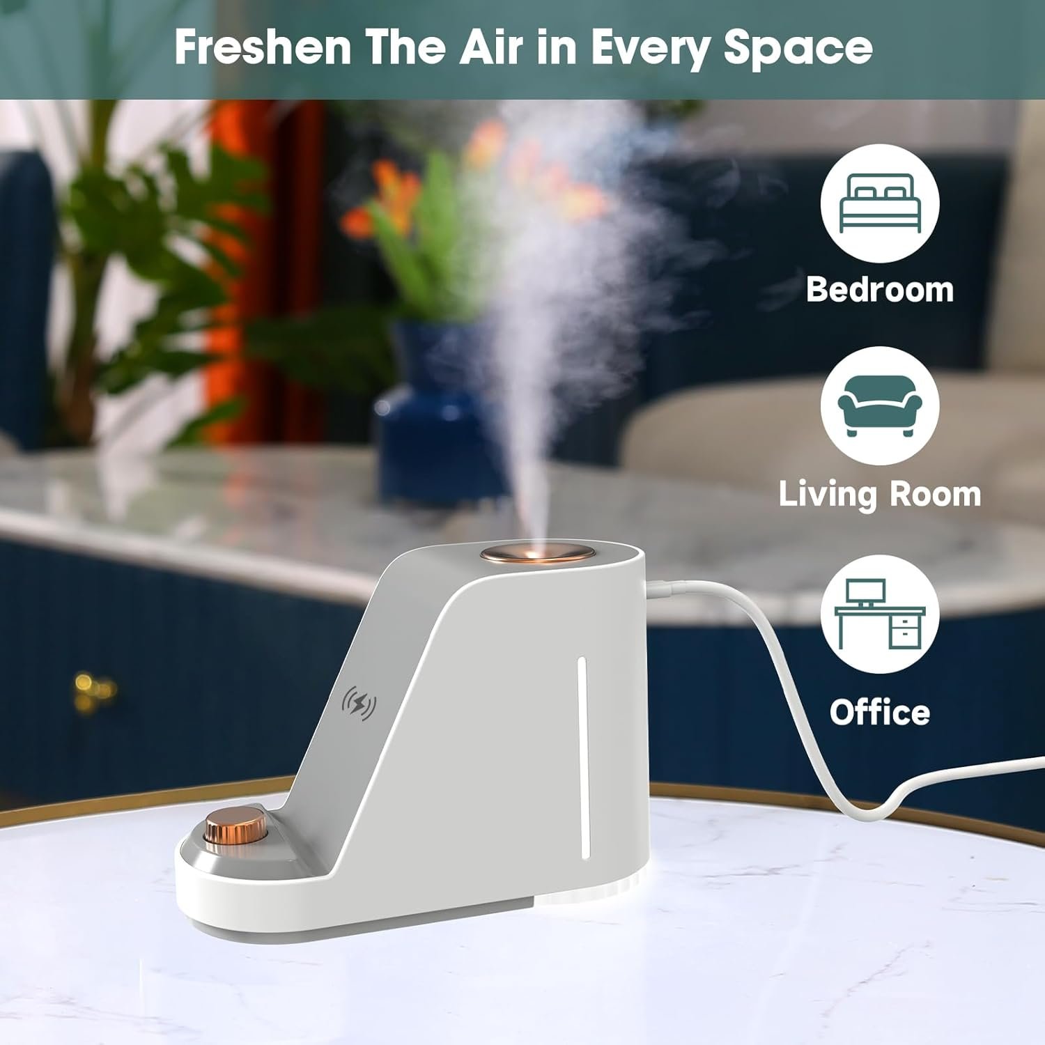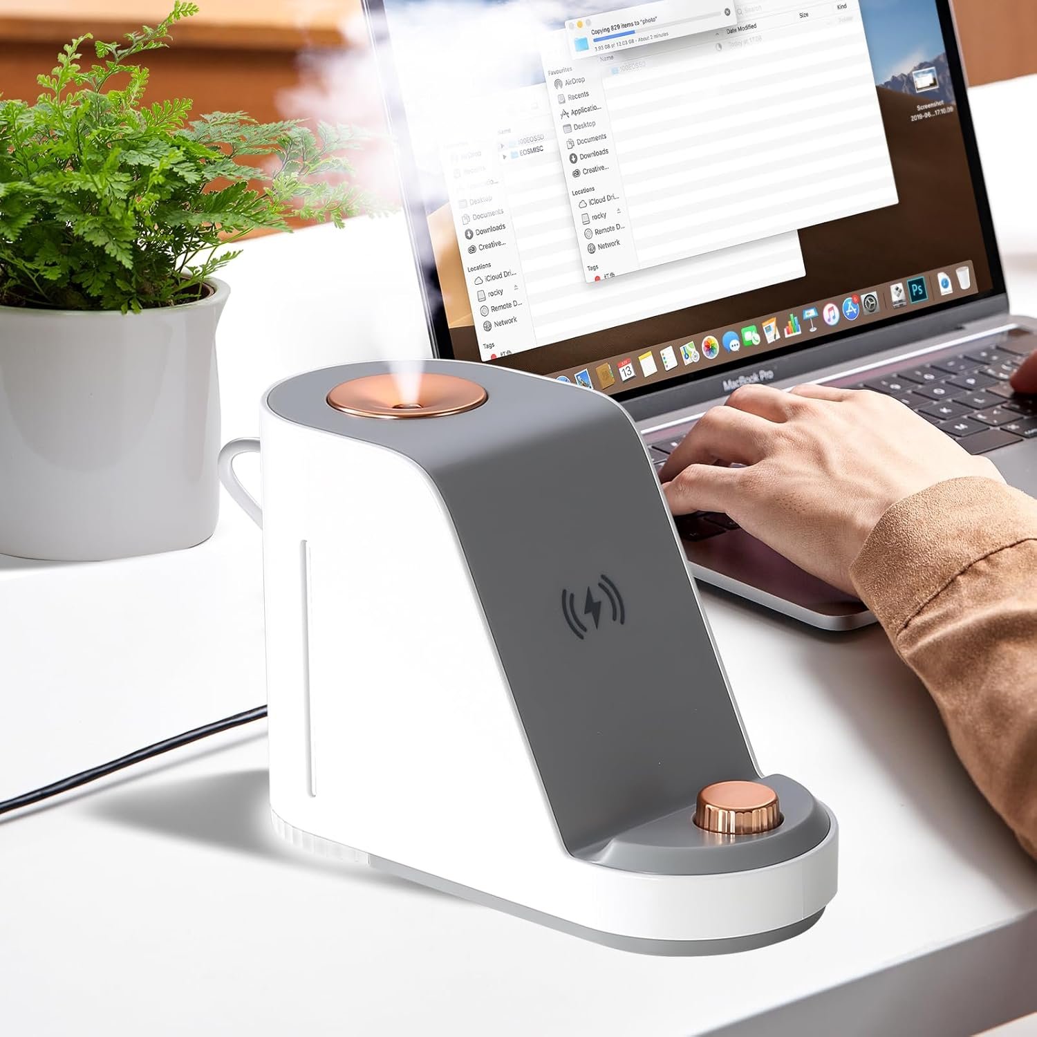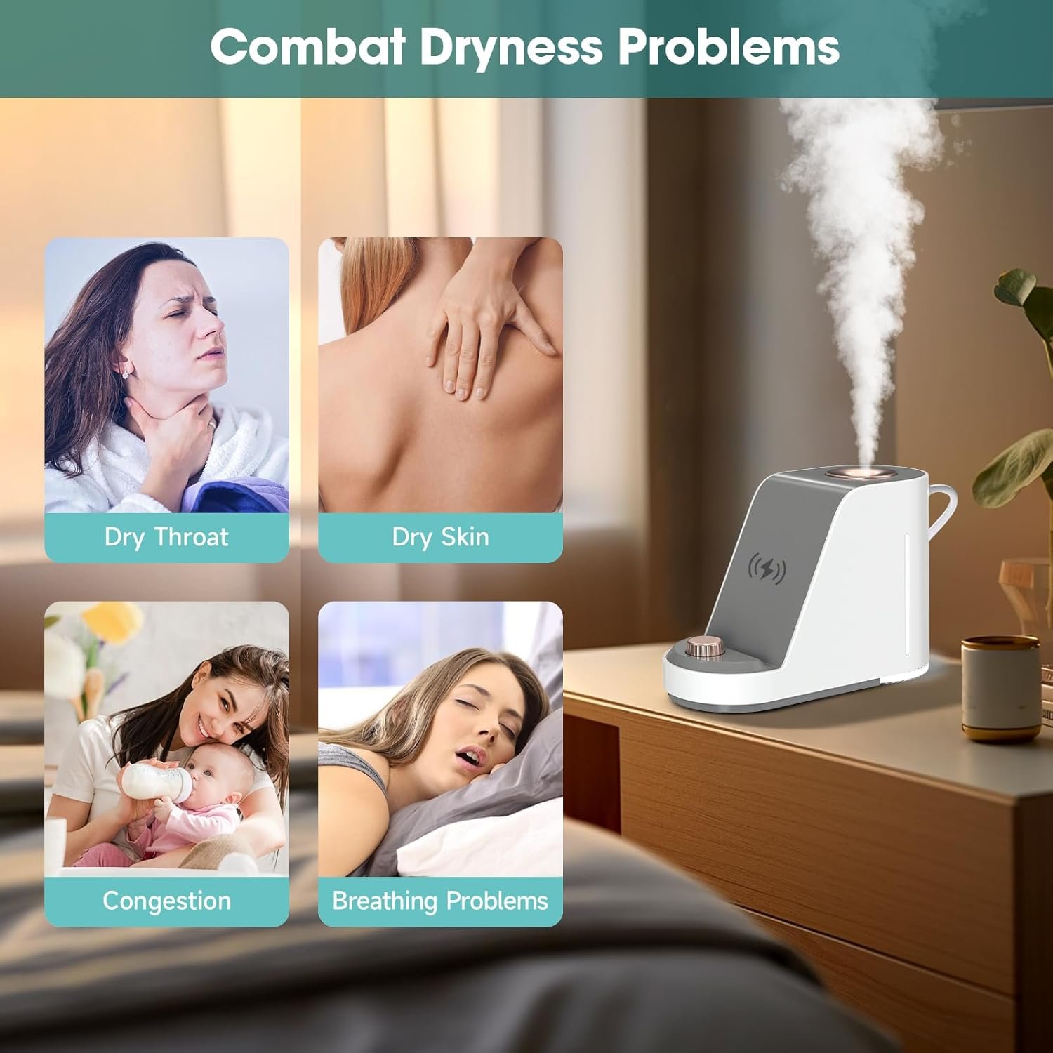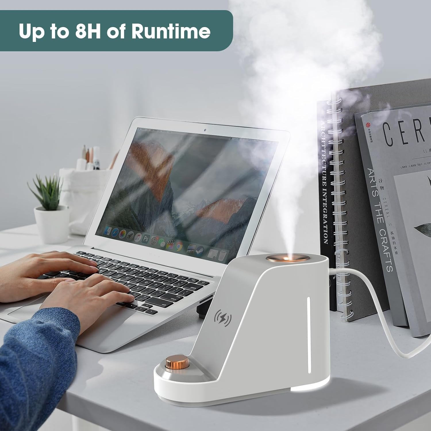 【4-in-1 Functionallity】 This humidifier combines ultrasonic humidification, wireless cell phone charging, night light, and cell phone holder, which can give you an all-around great experience.