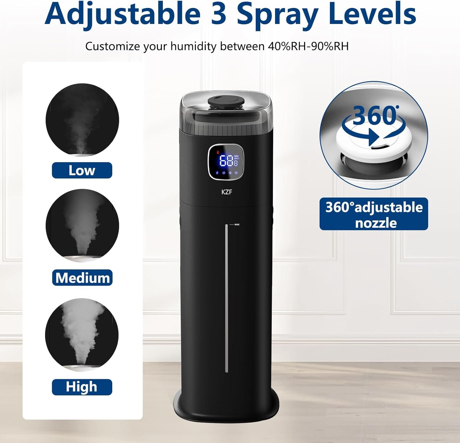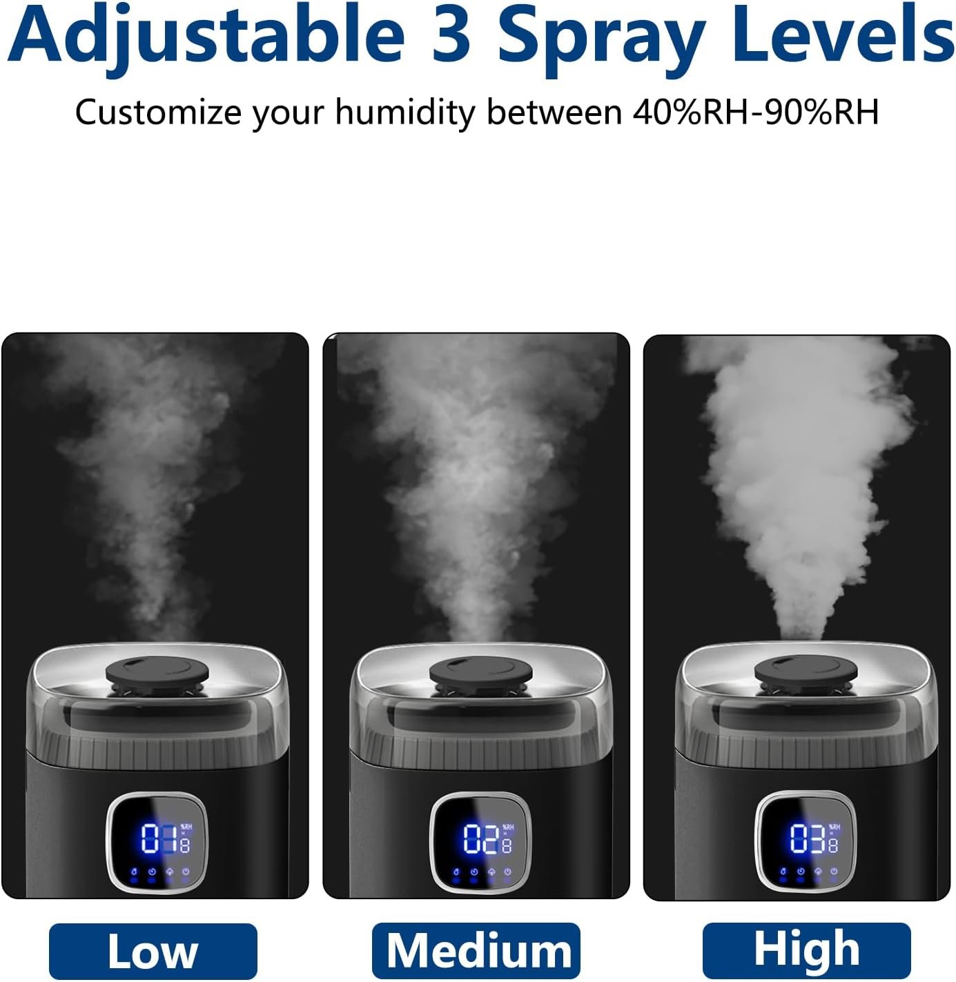 ๐Ÿฏ ๐—”๐—ฑ๐—ท๐˜‚๐˜€๐˜๐—ฎ๐—ฏ๐—น๐—ฒ ๐— ๐—ถ๐˜€๐˜ ๐—ฉ๐—ผ๐—น๐˜‚๐—บ๐—ฒ ๐—Ÿ๐—ฒ๐˜ƒ๐—ฒ๐—น๐˜€ This large room humidifier provides 3 levels (low/medium/high) of flexible mist volume adjustment to meet different needs. The 360ยฐ rotating nozzle allows us to control the mist flow direction according to different needs.