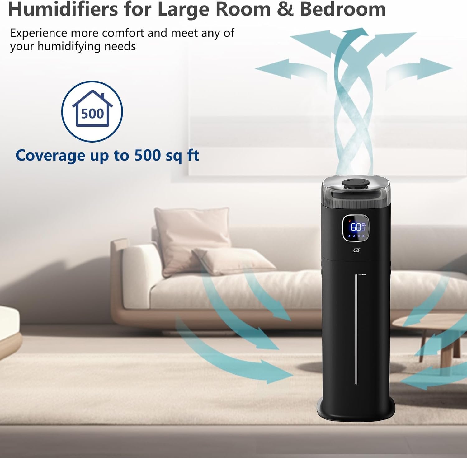 ๐—›๐˜‚๐—บ๐—ถ๐—ฑ๐—ถ๐—ณ๐—ถ๐—ฒ๐—ฟ๐˜€ ๐—ณ๐—ผ๐—ฟ ๐—Ÿ๐—ฎ๐—ฟ๐—ด๐—ฒ ๐—ฅ๐—ผ๐—ผ๐—บ ๐—•๐—ฒ๐—ฑ๐—ฟ๐—ผ๐—ผ๐—บ The humidifier with a 9 liter/2.38 gallon detachable water tank can cover 500 square feet and has a powerful spray volume of 350 ml/hour, helping you sleep comfortably without nasal congestion and coughing during the dry season or dry mouth. At the same time, it can keep your skin moist and effectively prevent skin peeling and cracking.