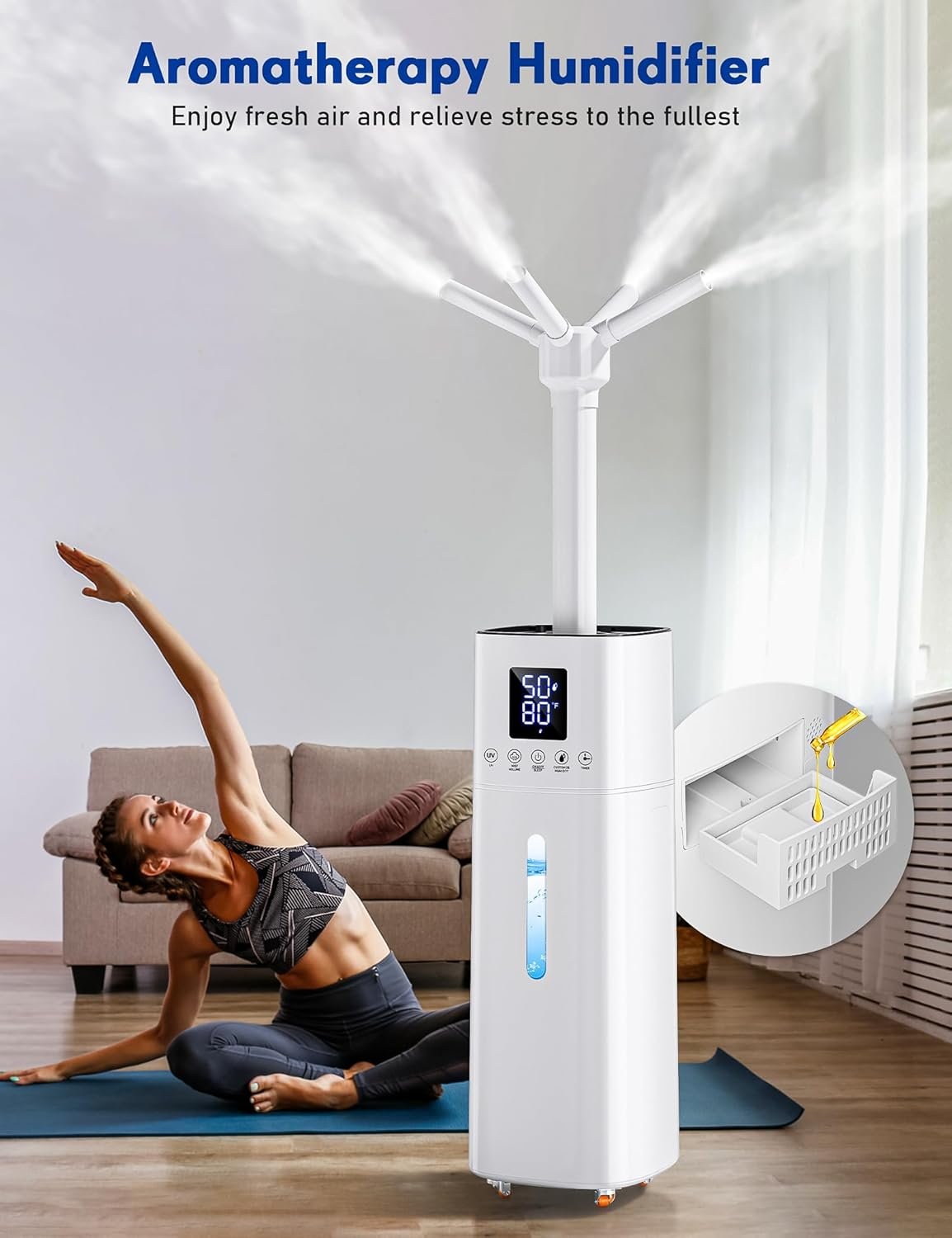 【Humidifier for Large Rooms】 This whole-house humidifier is with a water capacity of 15L (4 Gal) and a high mist output of 600 ml/h. It can cover a room area of 2000sqft, effectively increasing the air humidity in both homes and offices. Additionally, the cool mist humidifiers features a built-in essential oil tray that allows you to add your favorite scents to the fine mist.