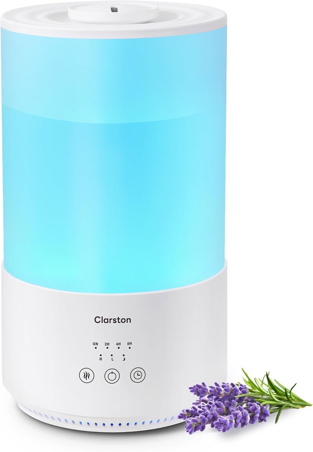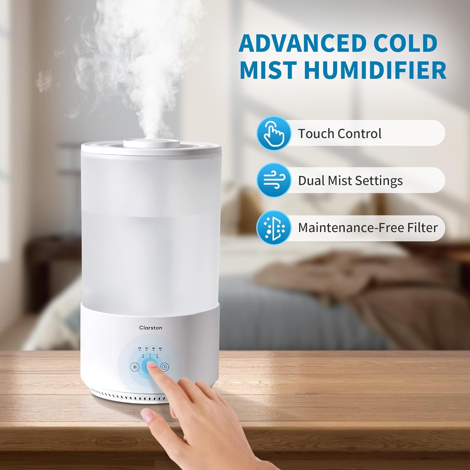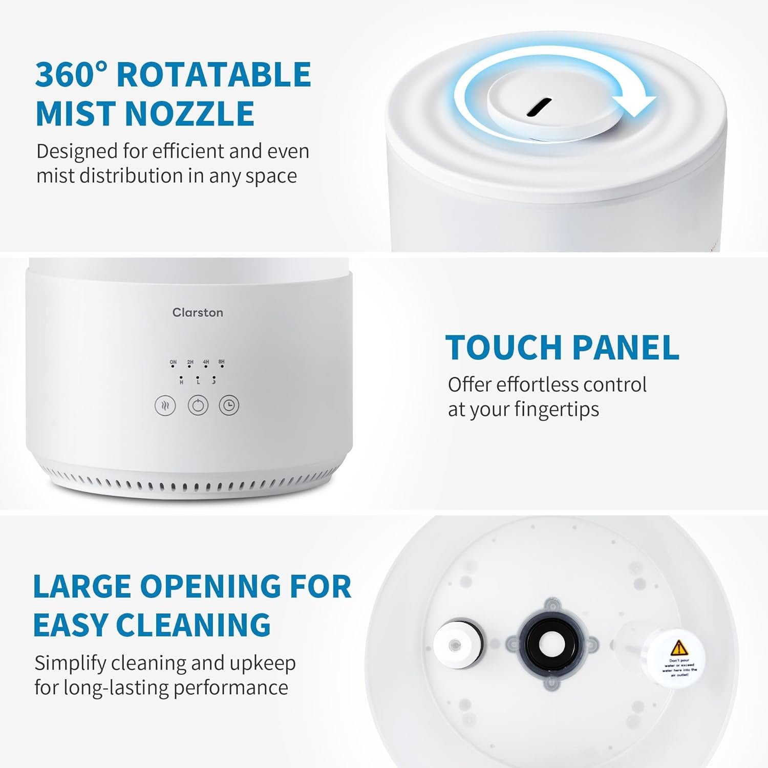 Extended Operation & Auto Shut-Off: With a 4L large tank, enjoy up to 40 hours of continuous humidification; the built-in timer allows up to 8 hours of set operation, promoting quicker sleep and effectively relieving congestion and dry throat.